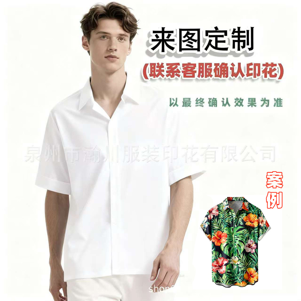 크로스보더 여름 유럽 및 미국 프린트 남성 쿠바 칼라 4방향 스트레치 하와이안 셔츠 비치 캐주얼 루즈핏 셔츠스토어 가기