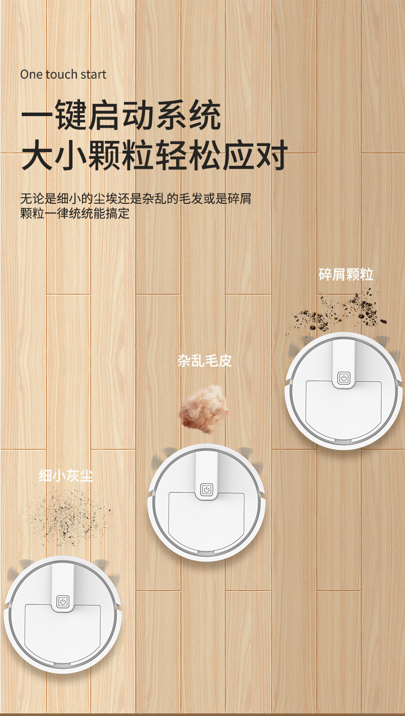 국경 간 지능형 청소 로봇 완전 자동 홈 청소, 흡입 및 걸레 3-in-1 진공 청소기 USB 충전식 청소 기계