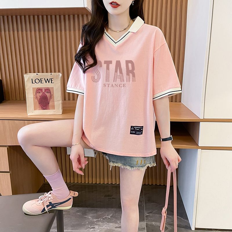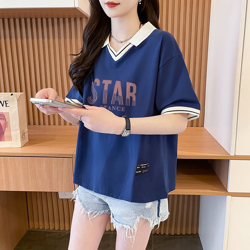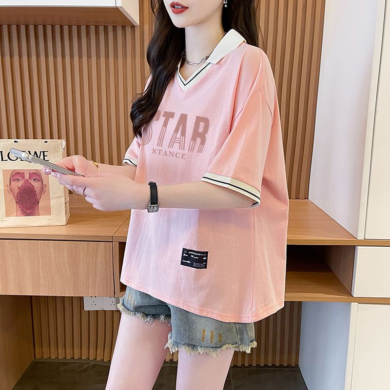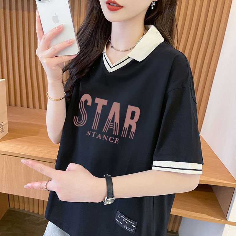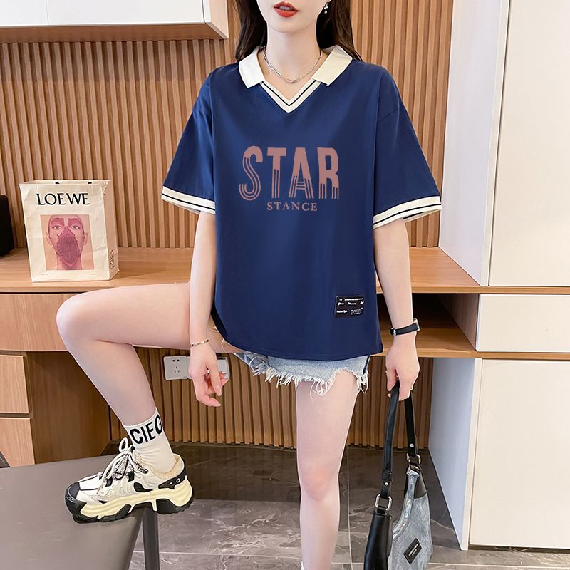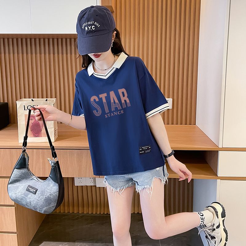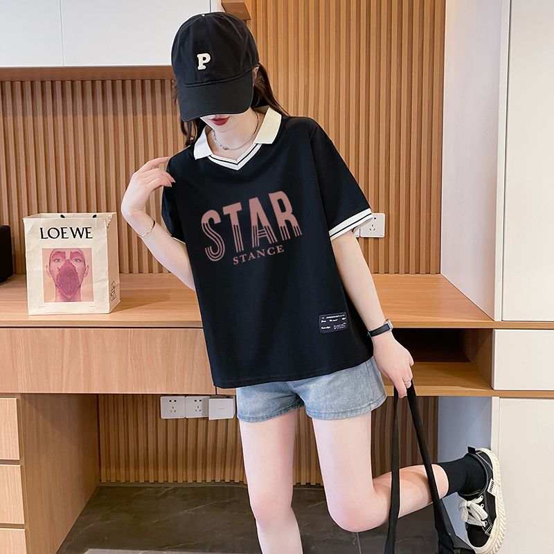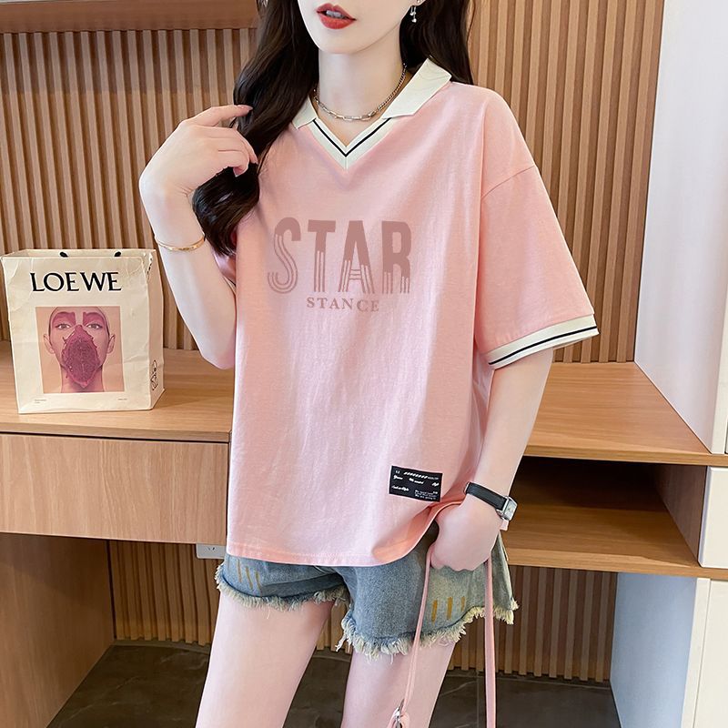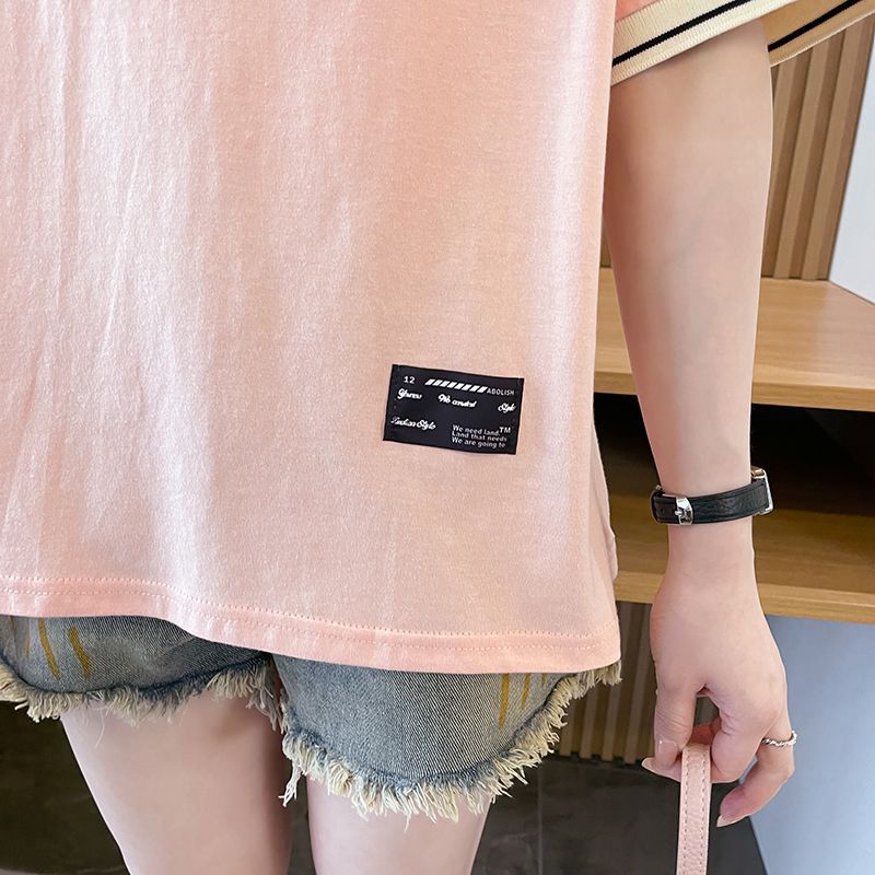 순면 한국판 대형 루즈 배 커버 티셔츠 여성을 위한 새로운 인기 반팔 티셔츠, 중학생을 위한 패셔너블한 상의