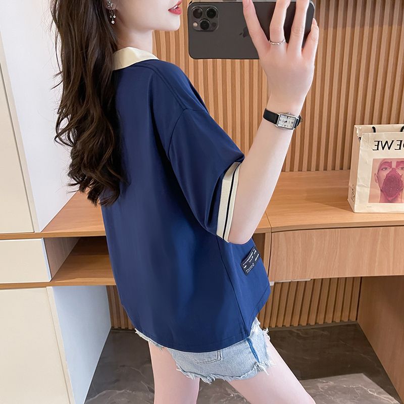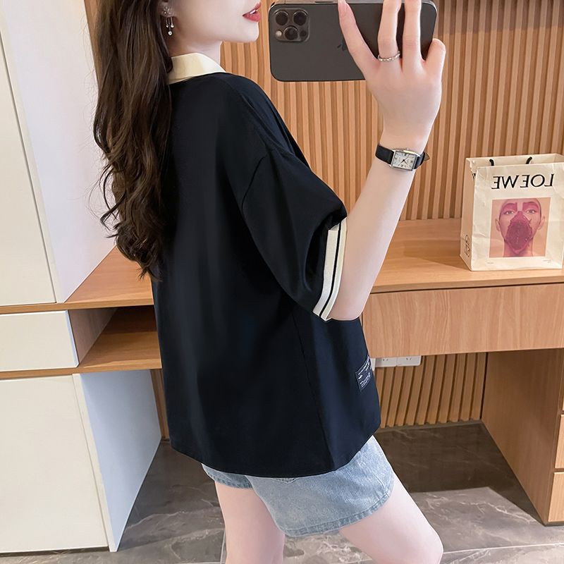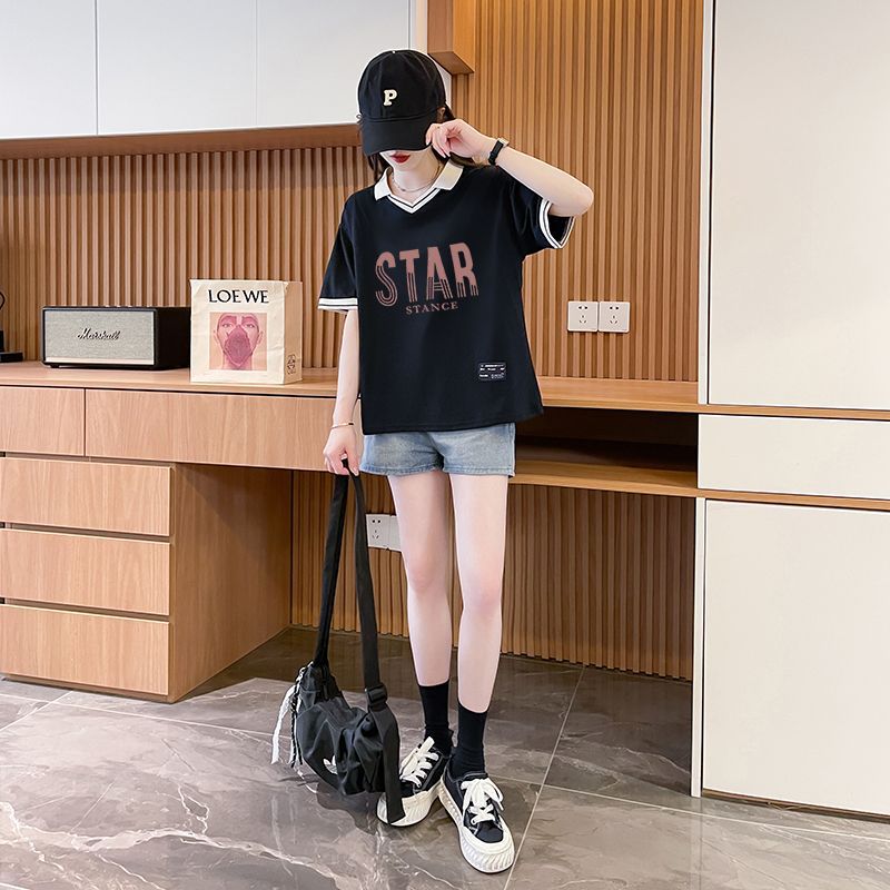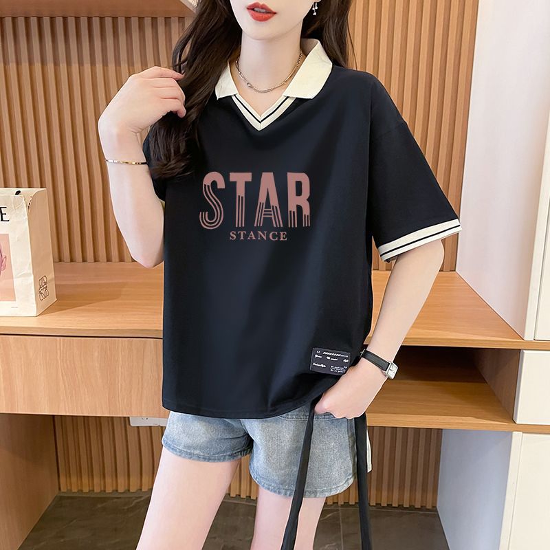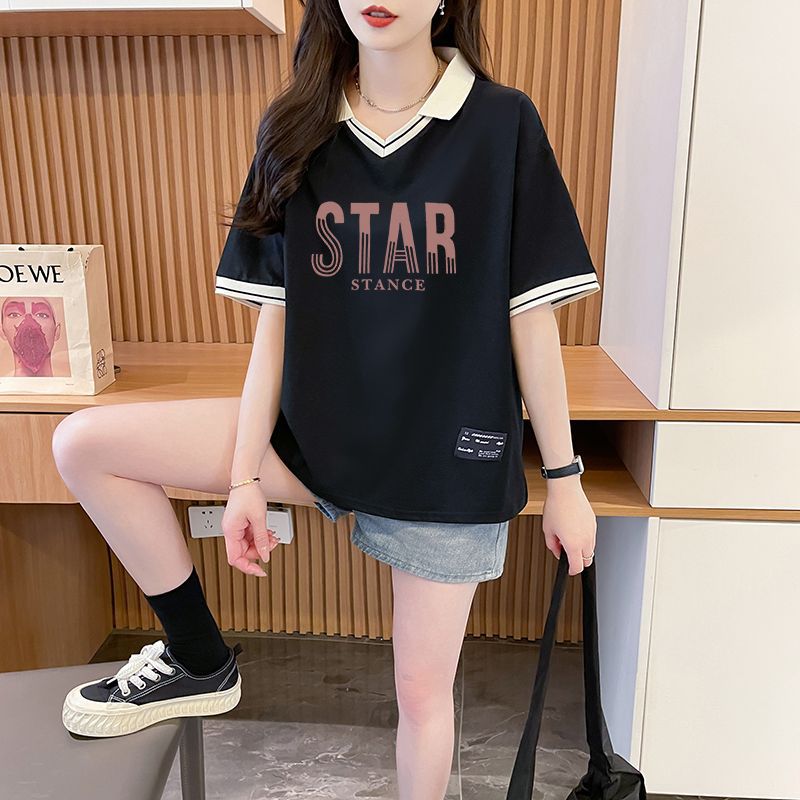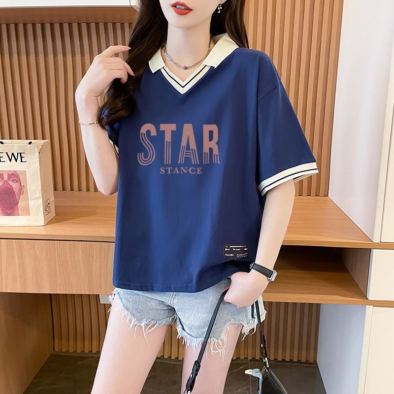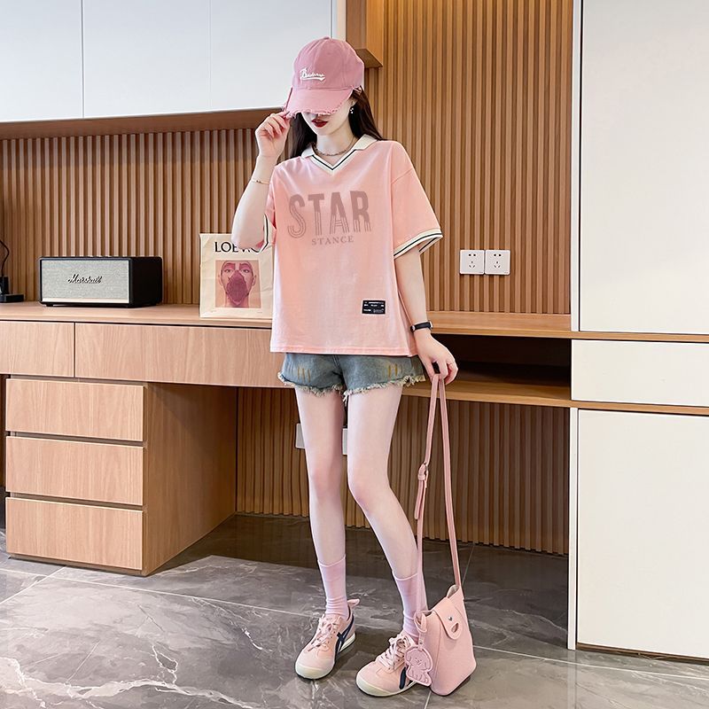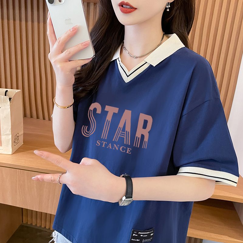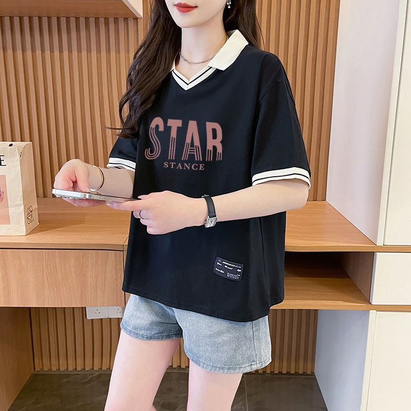 순면 한국판 대형 루즈 배 커버 티셔츠 여성을 위한 새로운 인기 반팔 티셔츠, 중학생을 위한 패셔너블한 상의
