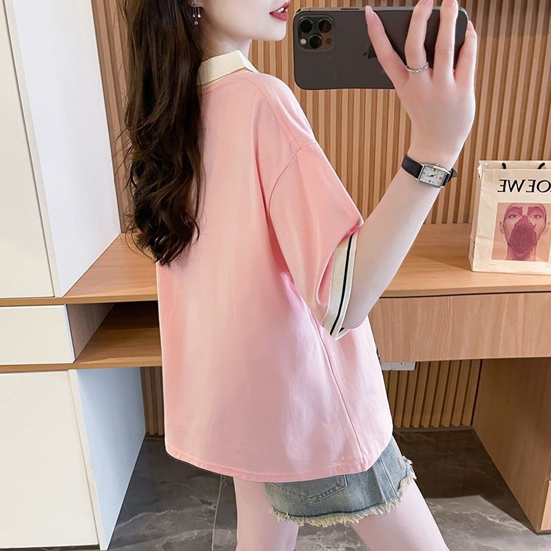 순면 한국판 대형 루즈 배 커버 티셔츠 여성을 위한 새로운 인기 반팔 티셔츠, 중학생을 위한 패셔너블한 상의스토어 가기
