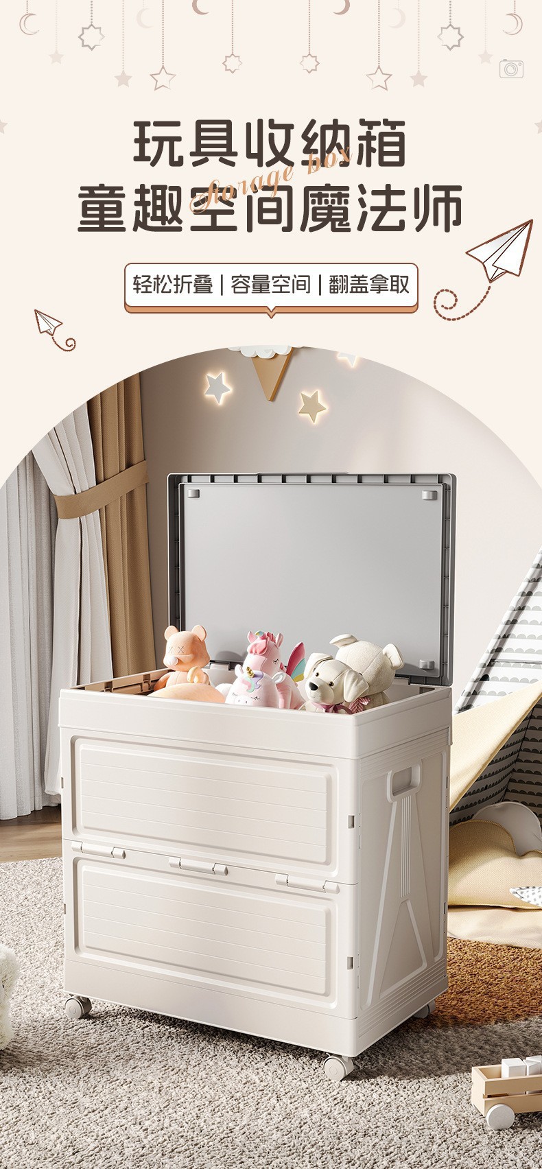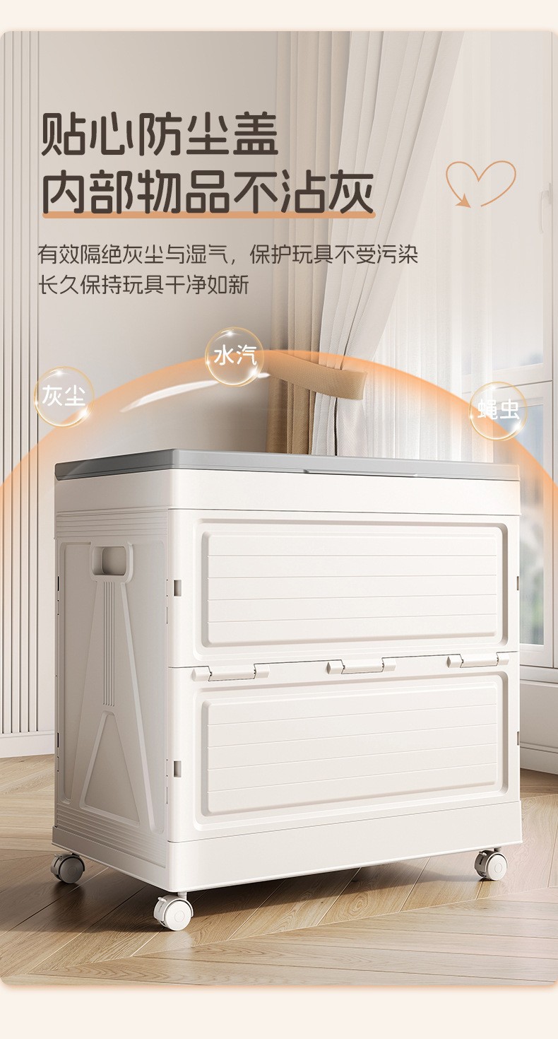 带盖密封、防尘防潮、透明可视、一目了然、带滑轮、万向轮、手提便携、可折叠、易折叠、折叠省空间、卡扣密封、分格收纳、稳固不塌、可堆叠、可嵌套、易清洗