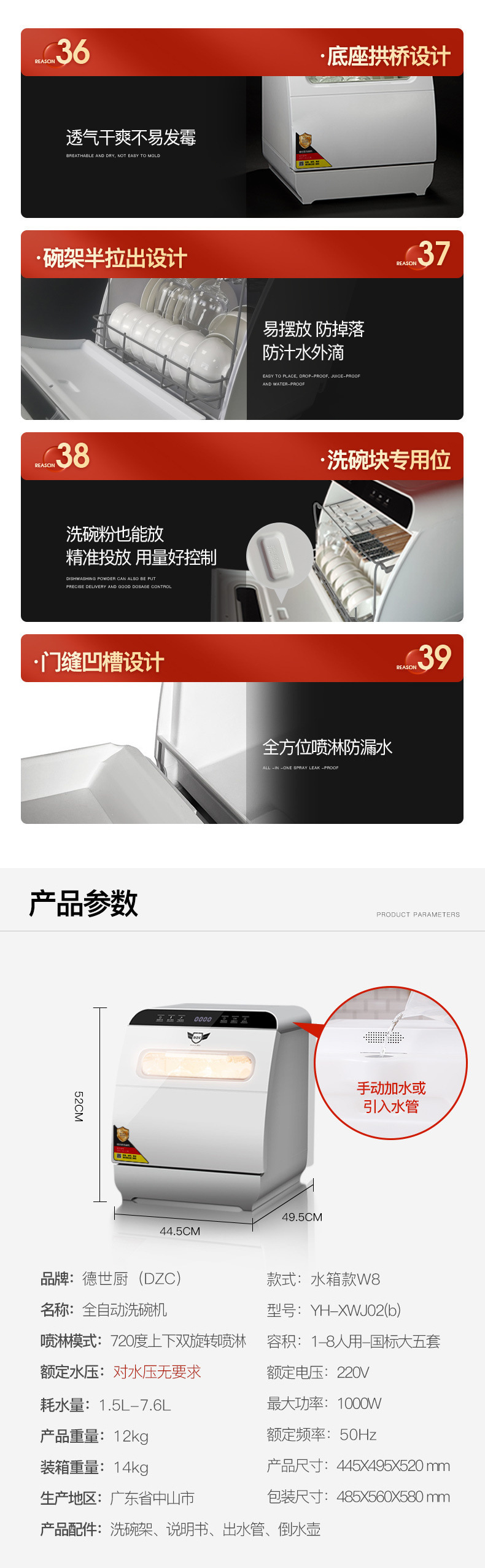 8인용 DeShiChu 설치가 필요 없는 식기세척기, 스마트 전자동 가정용 살균 및 소독, 열풍 건조