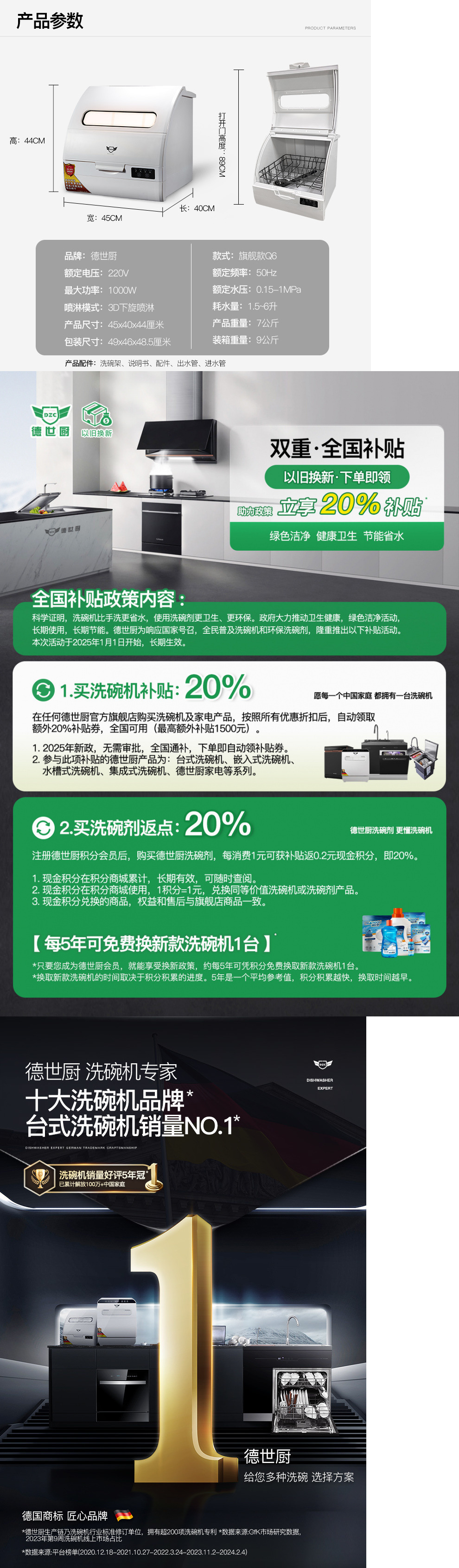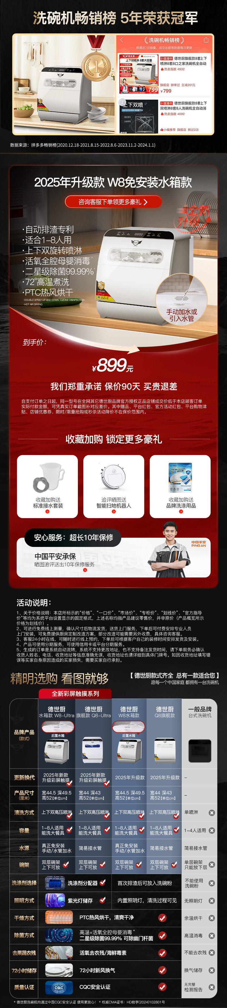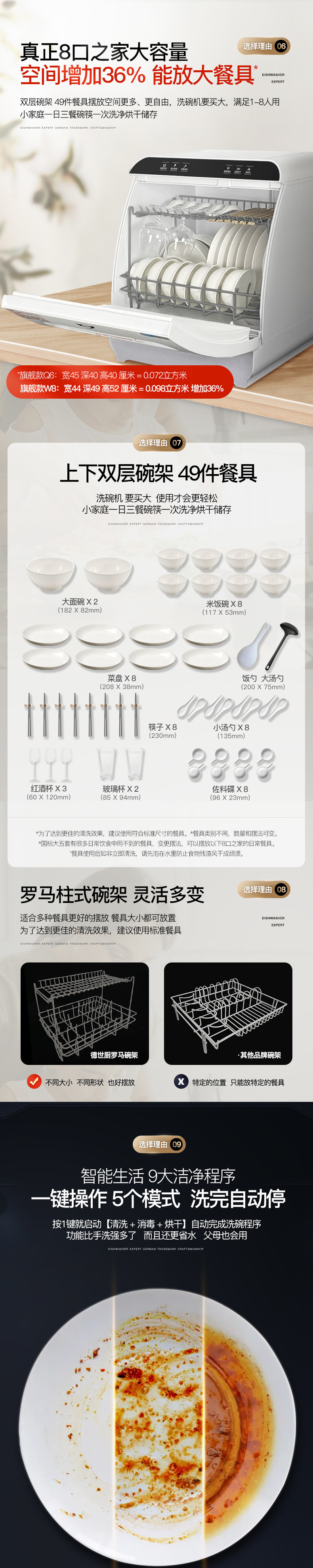 8인용 DeShiChu 설치가 필요 없는 식기세척기, 스마트 전자동 가정용 살균 및 소독, 열풍 건조스토어 가기