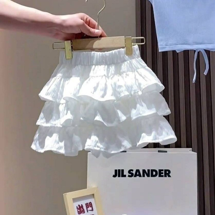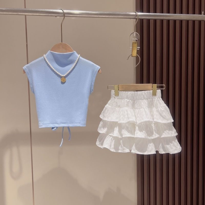 여자 여름 정장 2025 새로운 어린이 반팔 티셔츠 주름 치마 투피스 세트 아기 소녀 치마 바지 서양식 여름 옷스토어 가기