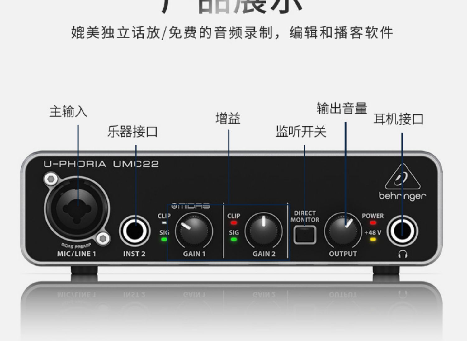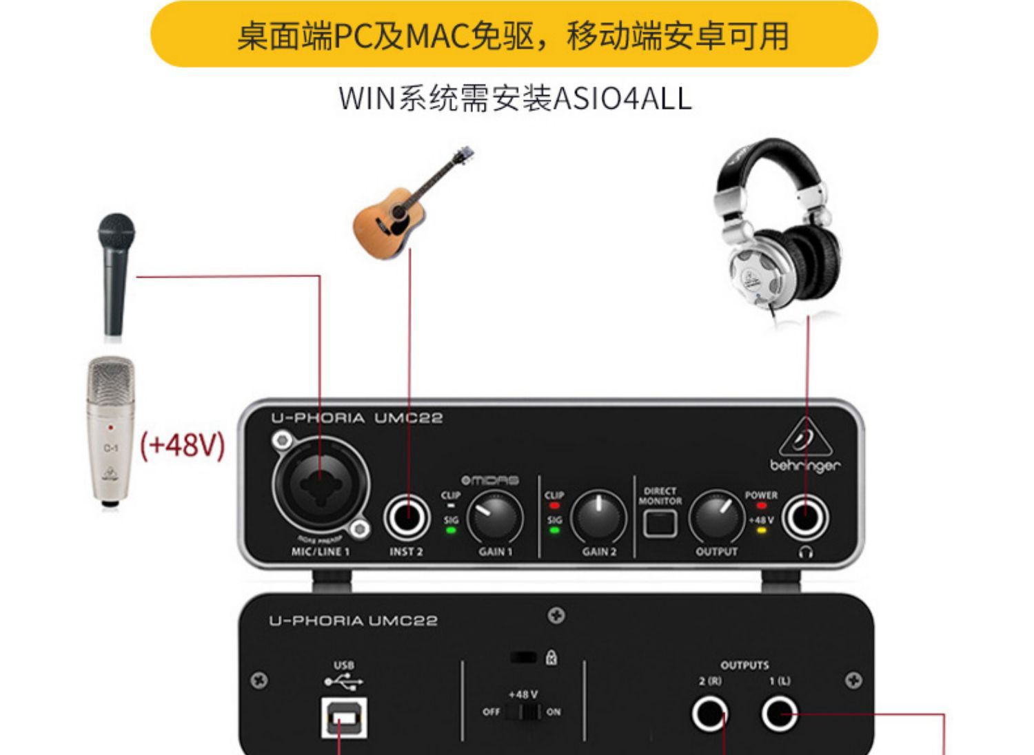 BEHRINGER/Behringer UMC22 202 204 사운드 카드 녹음 컴퓨터 사운드 카드 앵커 노래 노래 라이브 방송