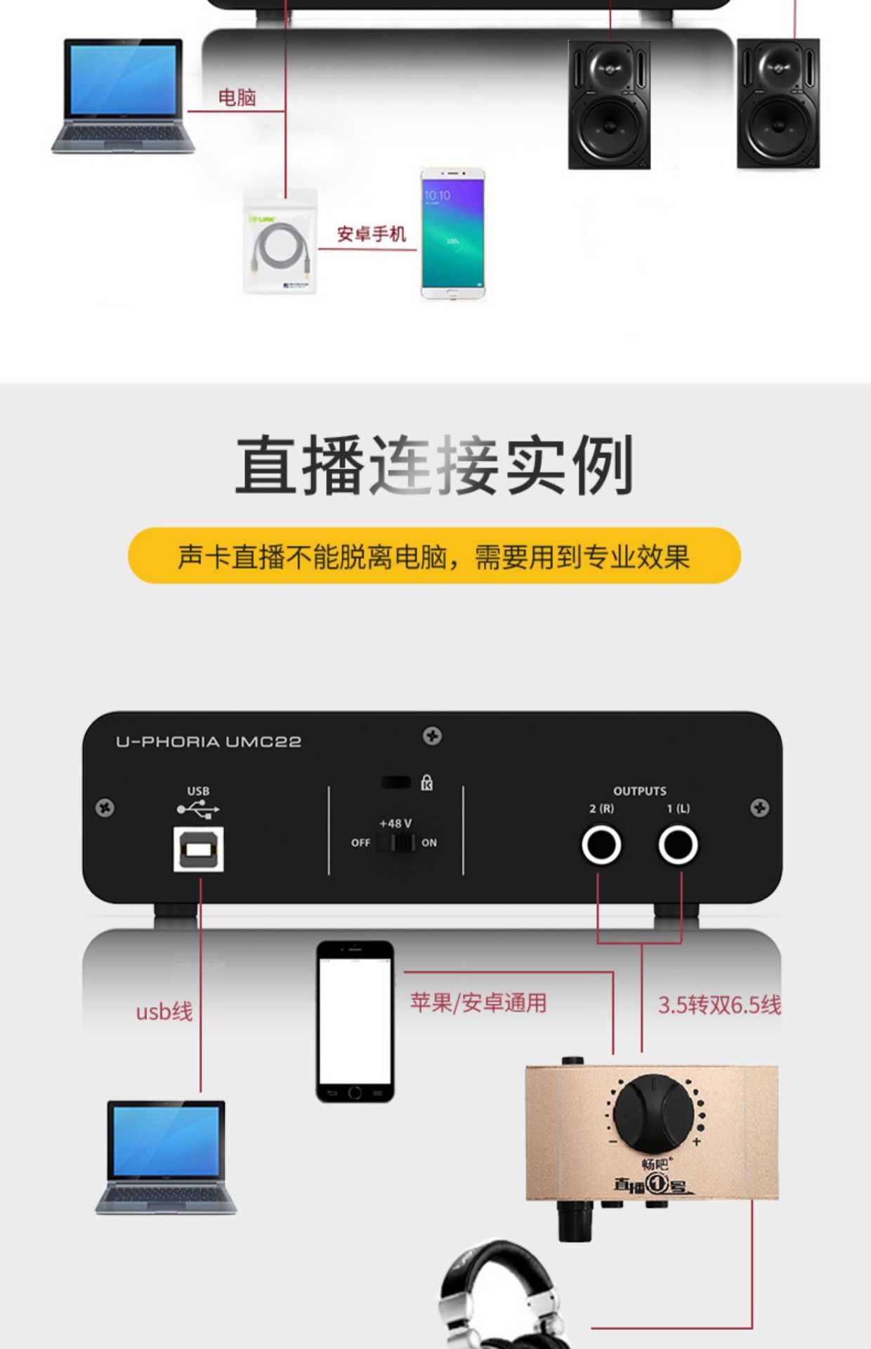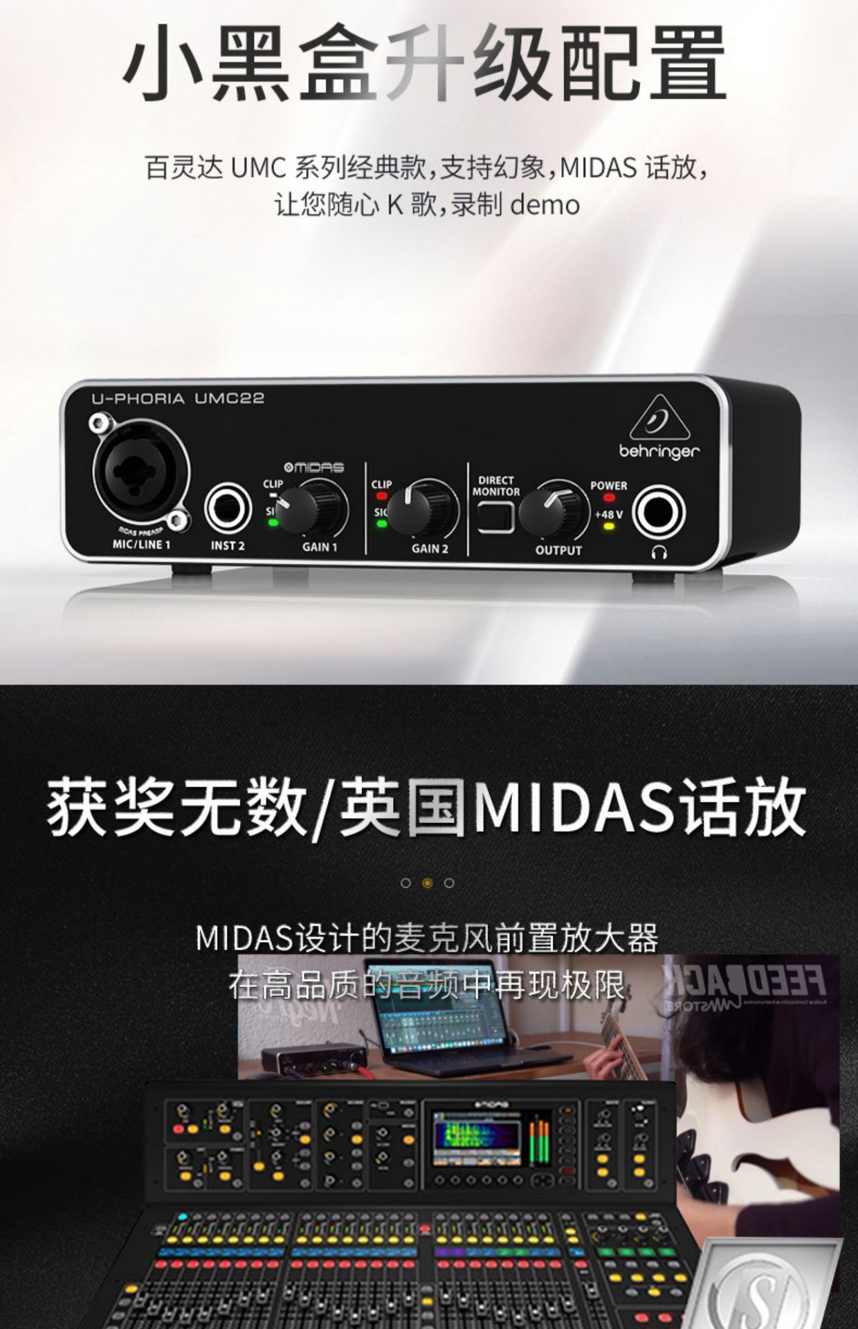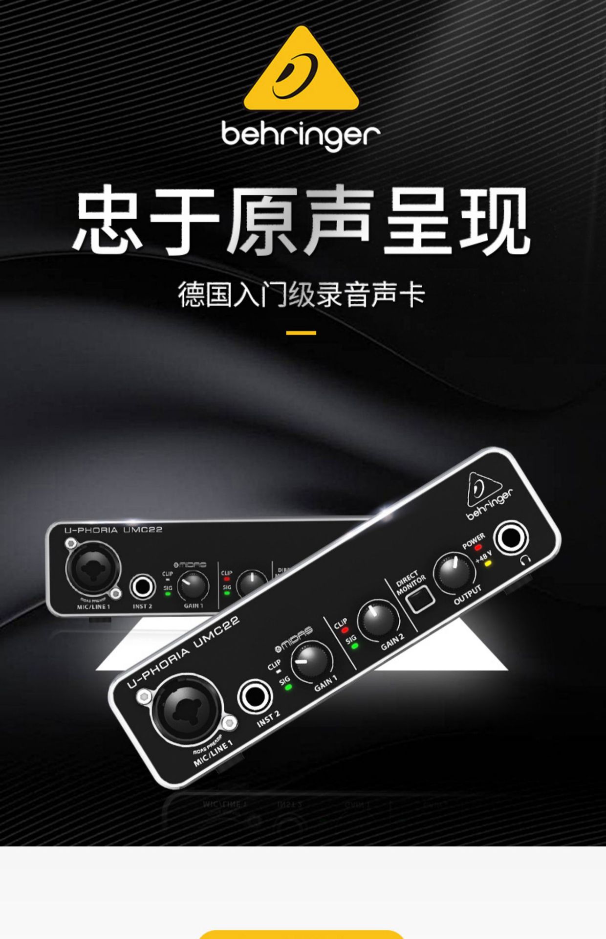 BEHRINGER/Behringer UMC22 202 204 사운드 카드 녹음 컴퓨터 사운드 카드 앵커 노래 노래 라이브 방송스토어 가기