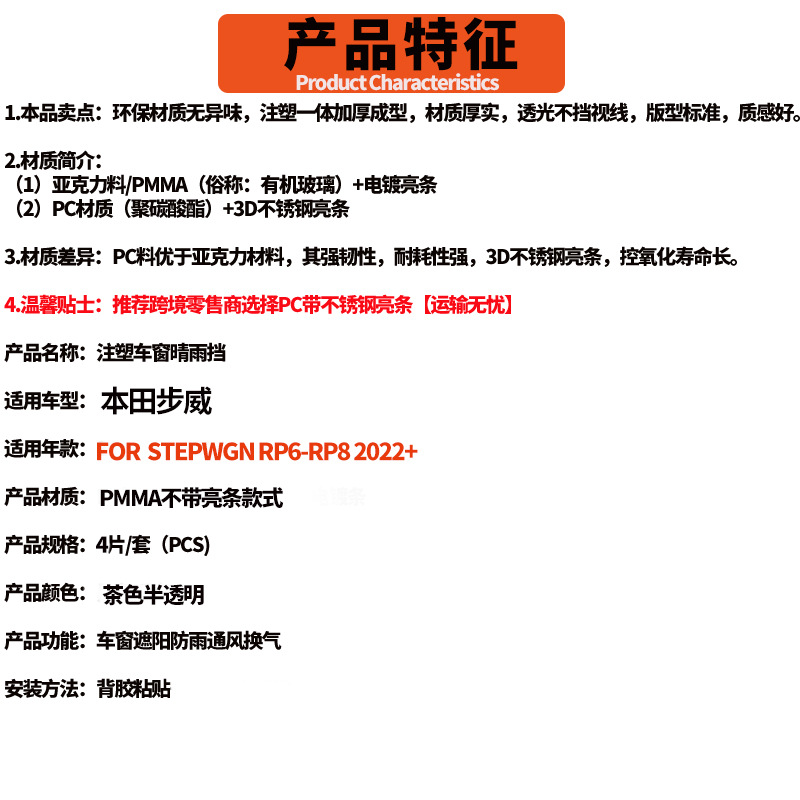 • Honda Step wgn [RP6-8 2022+] PC 소재는 퇴색하기 쉽지 않습니다 [밝은 스트립 없음] 자동차 창 레인 쉴드 4개