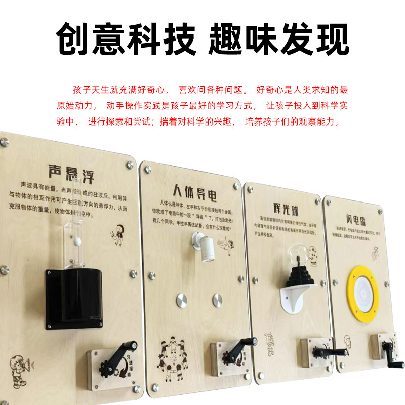 과학 기술 대화형 벽 유치원 초등학교 벽걸이 형 단단한 나무 과학 벽 장난감 실험 과학 기술 박물관 과학 장비