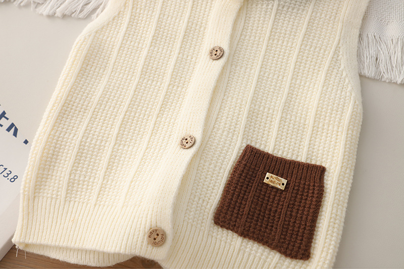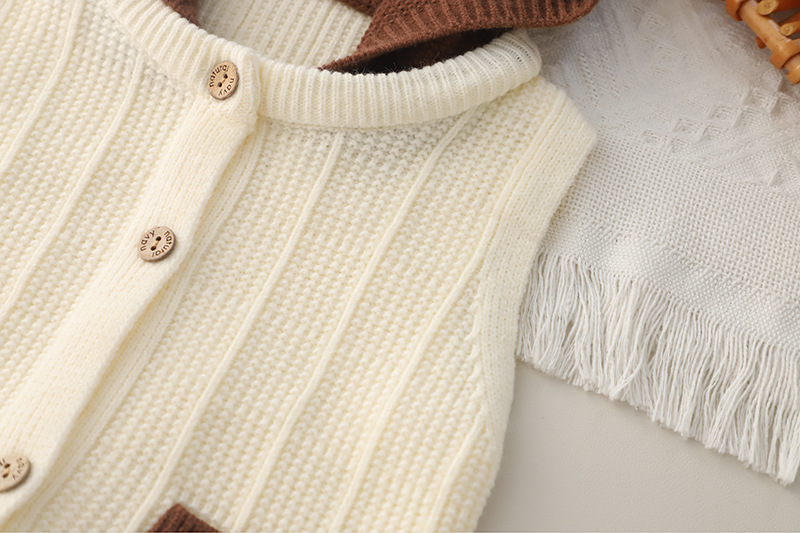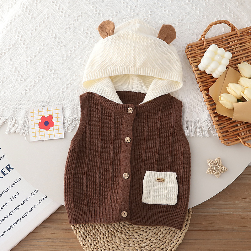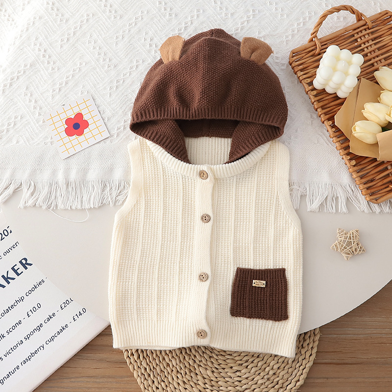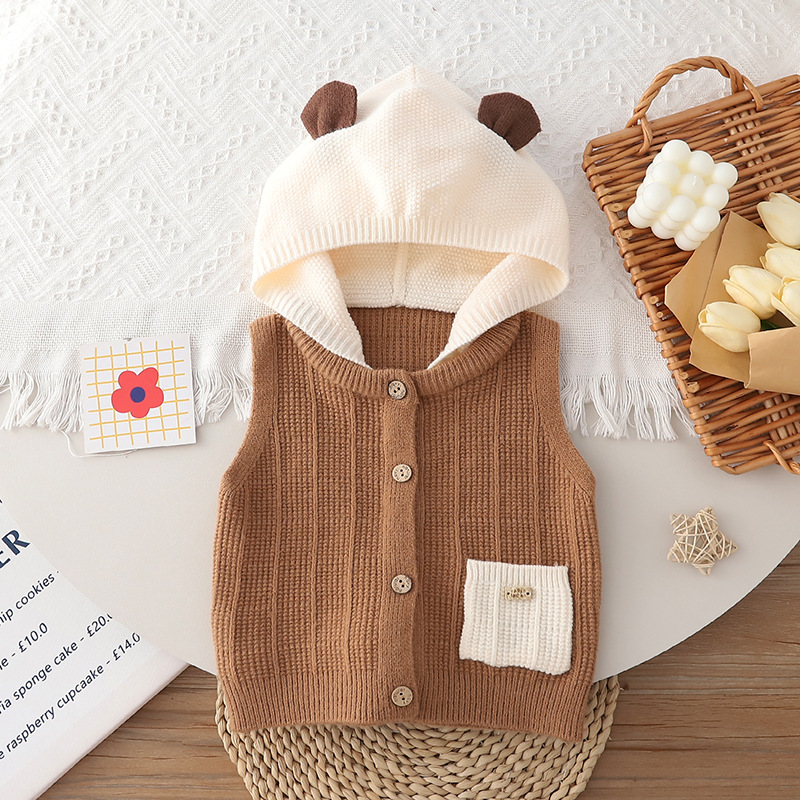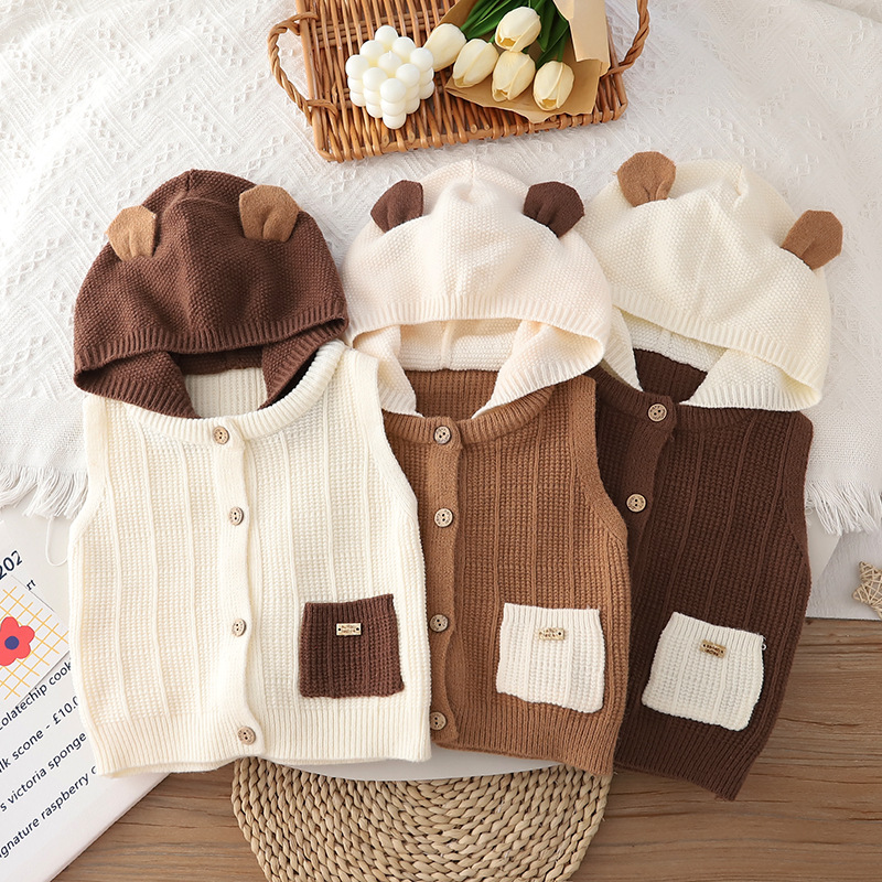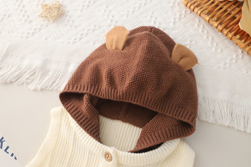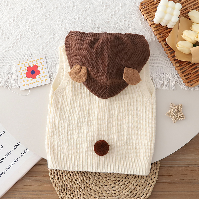 어린이 모직 조끼 후드 가을, 겨울 곰 풀오버 모자 스웨터 한국 스타일 니트 조끼 아기 귀여운 태아 모자