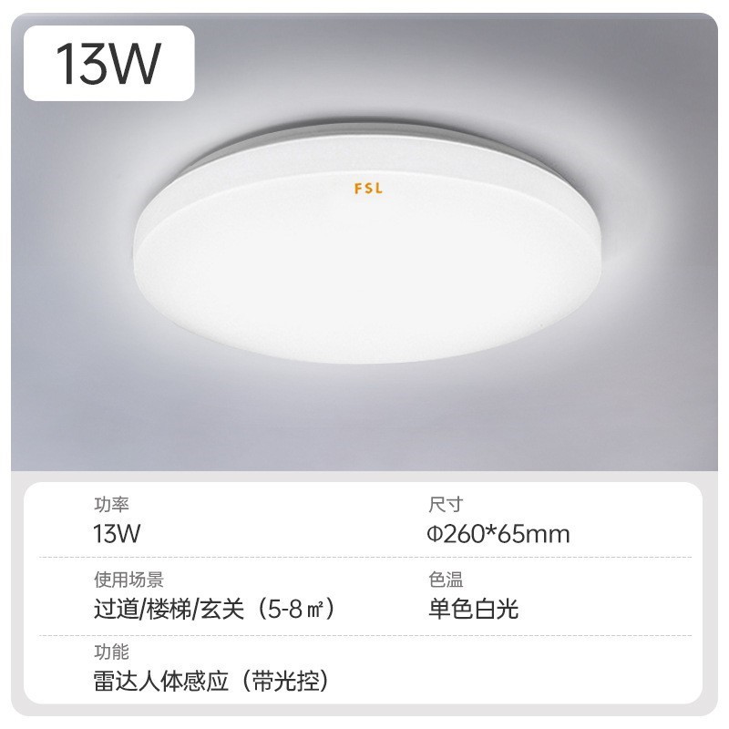 FSL Foshan Lighting LED 마이크로파 센서 천장등 복도 통로 발코니 원형 조명 제어 가정용