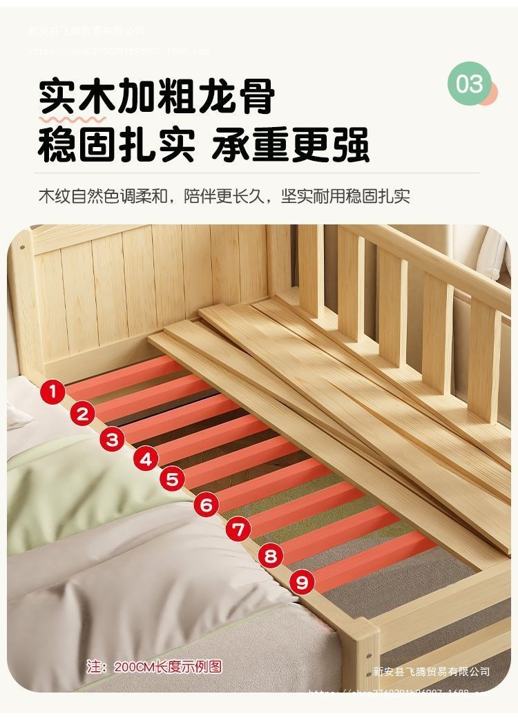 전체 단단한 나무 어린이 접합 침대 유아용 침대, 넓은 벨트 가드 레일, 높이 조절 가능, 소년 소녀 침대스토어 가기