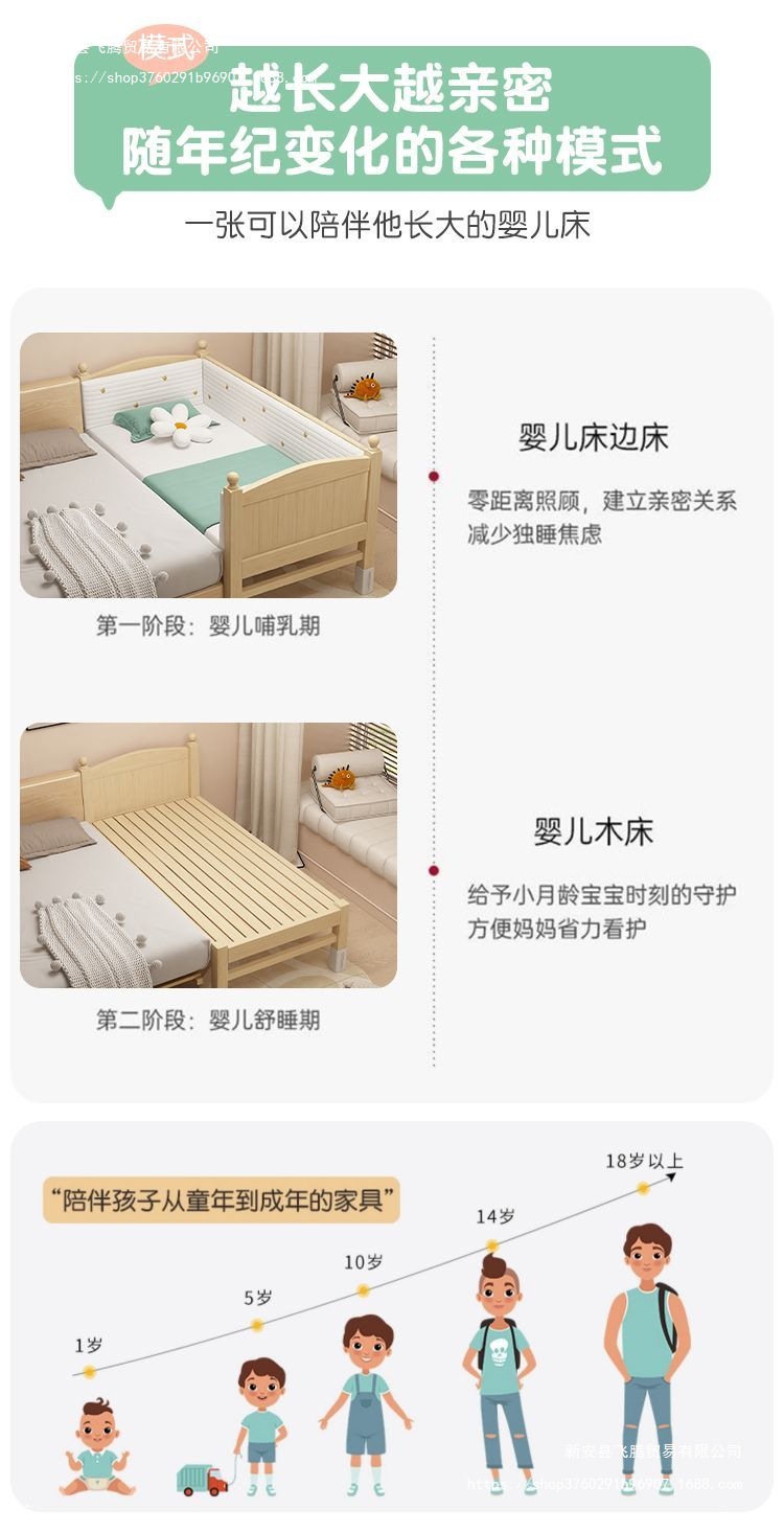 전체 단단한 나무 어린이 접합 침대 유아용 침대, 넓은 벨트 가드 레일, 높이 조절 가능, 소년 소녀 침대