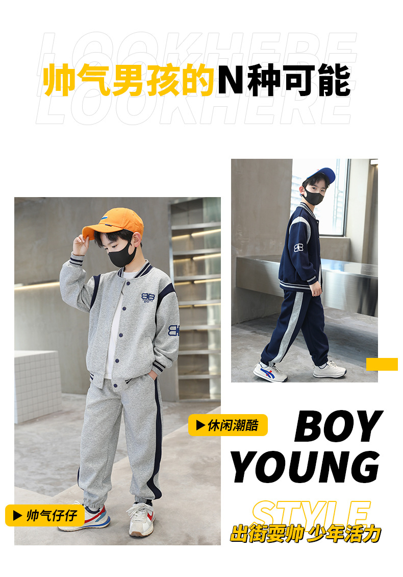 아동복 소년 가을 의류 정장 2025 새로운 스타일 중대형 어린이 잘 생긴 소년 봄, 가을 야구 유니폼 스포츠 투피스 세트스토어 가기