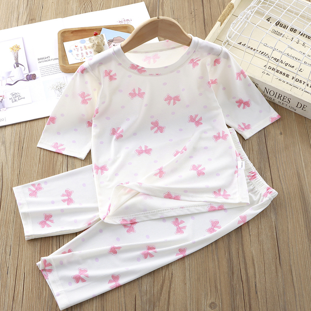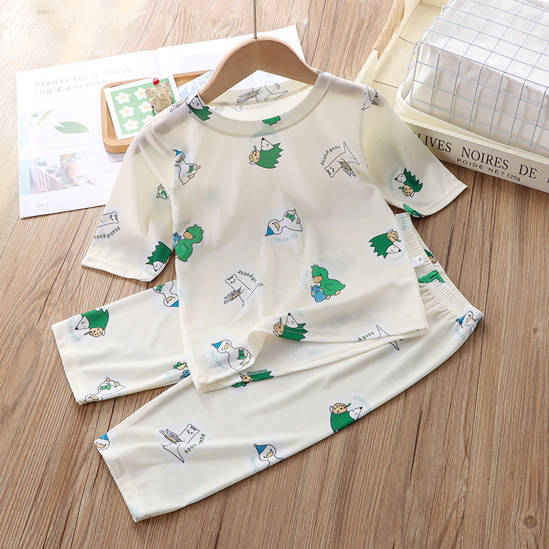 새로운 어린이 잠옷 여름 정장 만화 인쇄 소년 얇은 반팔 소녀 가정 의류 아동 의류 도매