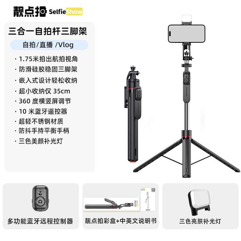 Doudou 셀카봉 삼각대 바닥 휴대폰 홀더 블루투스 촬영 손떨림 방지 개폐식 실크 스크린 맞춤형 TT06스토어 가기