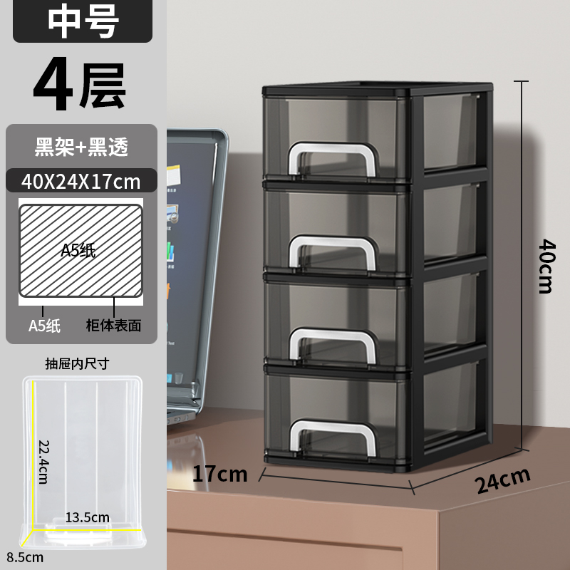 • M사이즈 4단[블랙 프레임+블랙 투명 서랍]