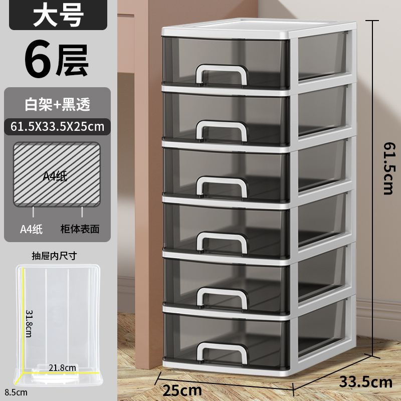 • 대형 6단 [검은색 프레임 + 검은색 투명 서랍]으로 A4 용지 보관 가능