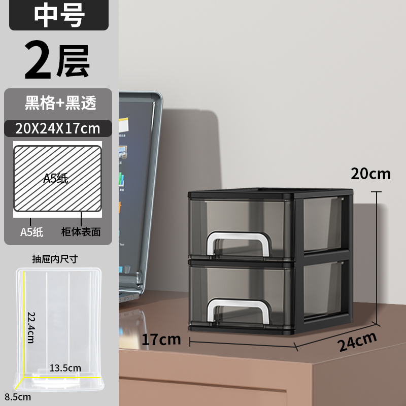 • 중형 2단 [블랙 프레임 + 블랙 투명 서랍]