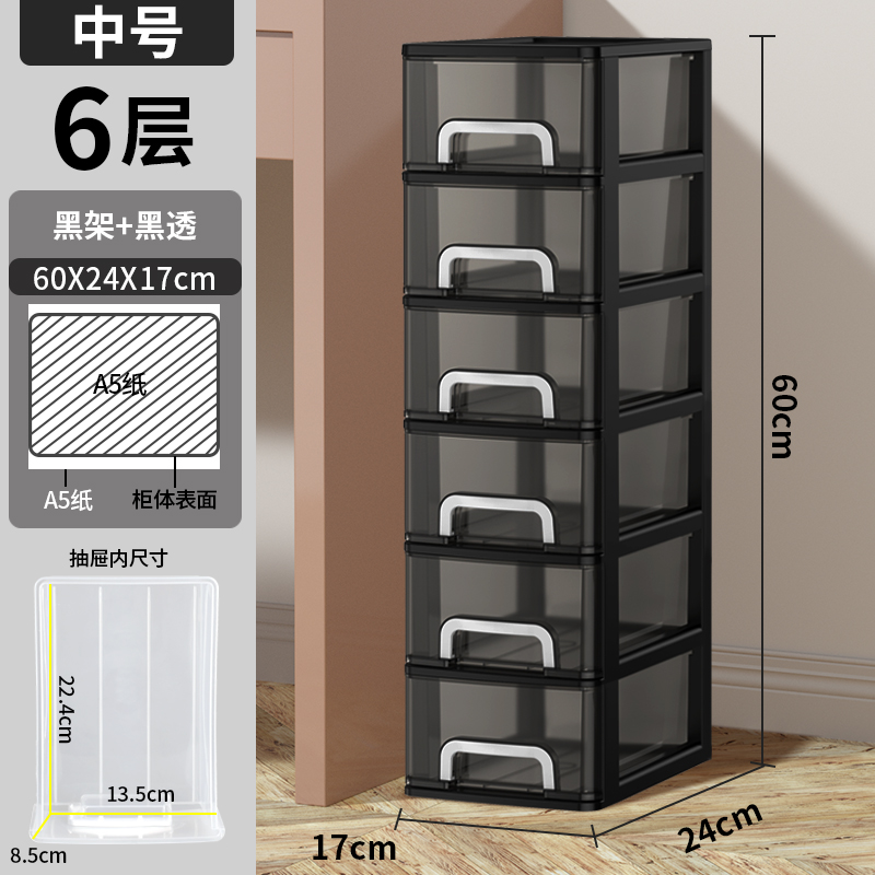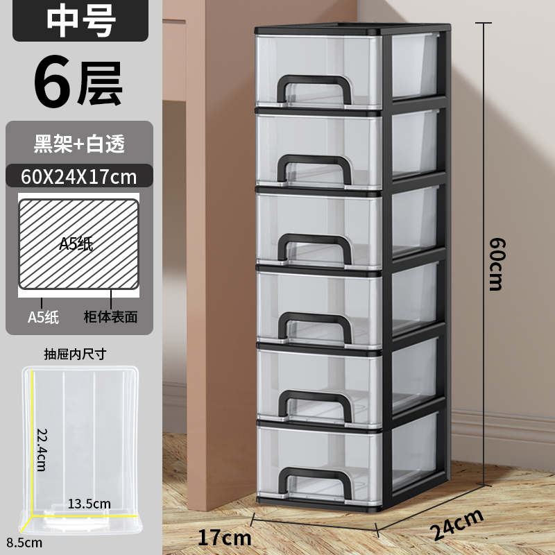 • 중형 6단 [검은색 프레임 + 검정색 투명 서랍]