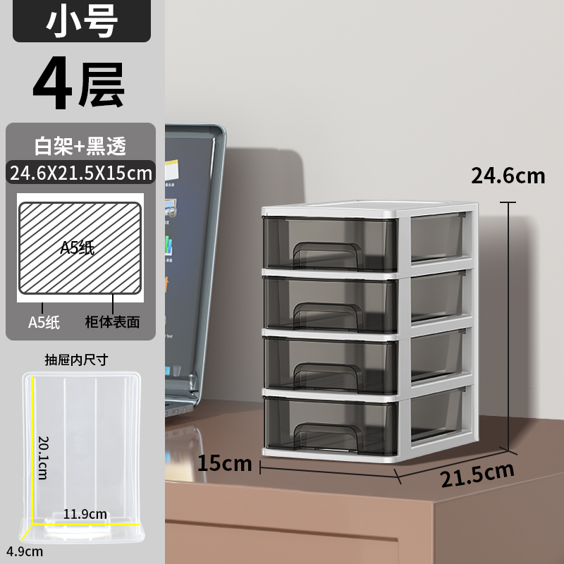 • 소형 4단[흰색 프레임+검은색 투명서랍] 장식없는 서랍