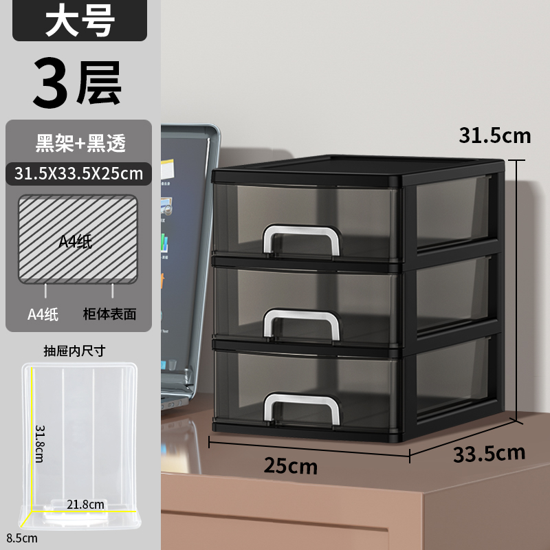 • 대형 3단[검은색 프레임+검은색 투명서랍]으로 A4용지 수납 가능