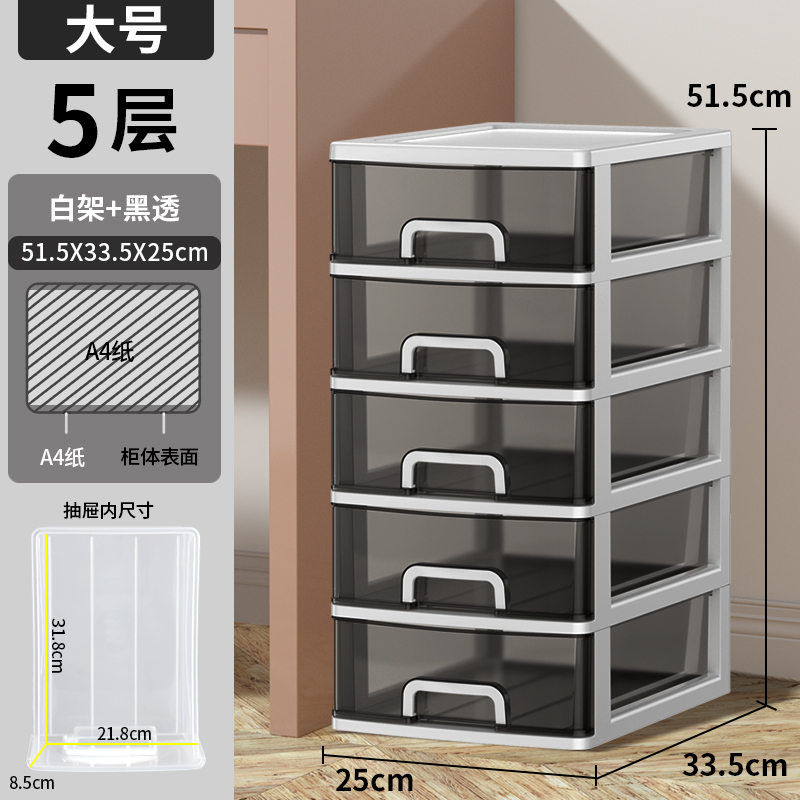 • 대형 5단[검은색 프레임 + 검은색 투명 서랍]으로 A4 용지 수납 가능