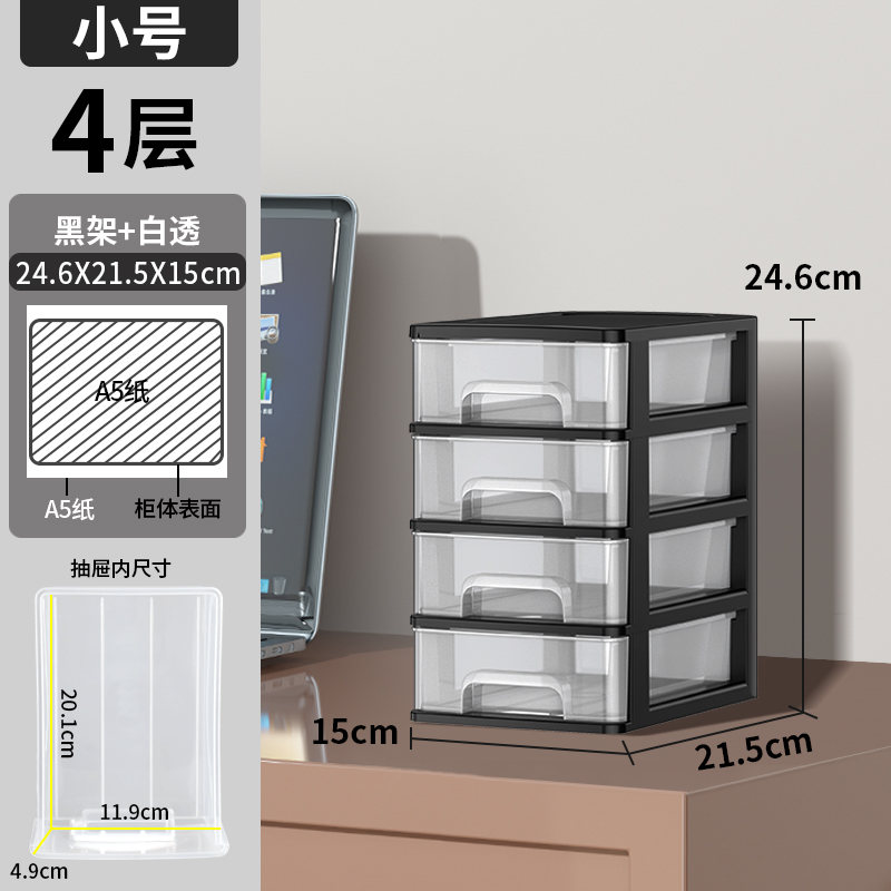 • 소형 4단[검은색 프레임+흰색 투명서랍]장식 없는 서랍