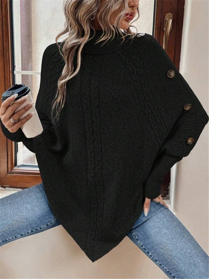 유럽과 미국의 새로운 가을, 겨울 케이블 여성 스웨터 아마존 국경 간 패션 터틀넥 버튼 장식 긴팔 배트 셔츠