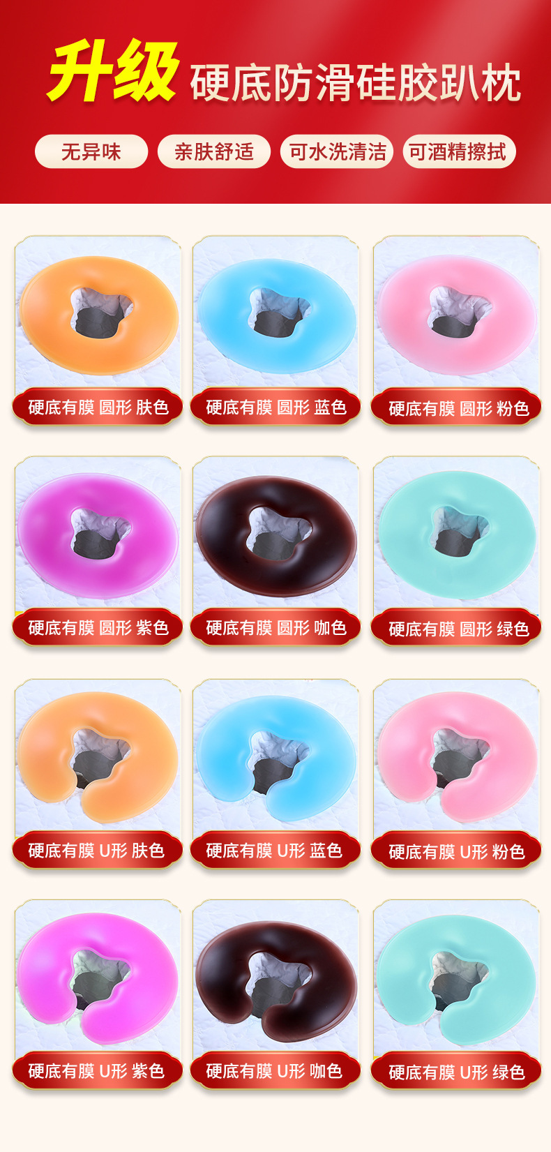 뷰티 실리콘 베개, 구멍이 있는 미용실 베개, 마사지 침대 구멍, 페이스 쿠션, 스파 페이스 베개, 베개, U자형 베개