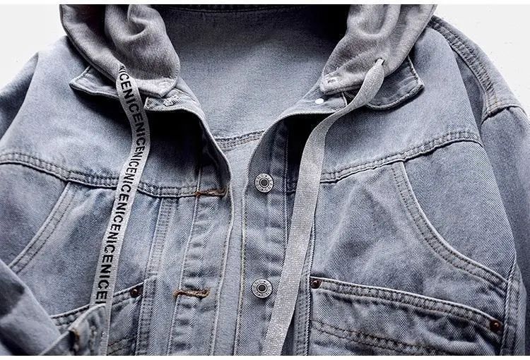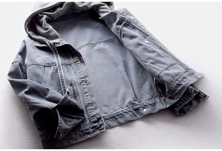 데님 재킷 여학생 한국 스타일 루즈한 짧은 재킷 긴팔 후드 재킷 멀티 포켓 가을 겨울용 다용도 탑스토어 가기