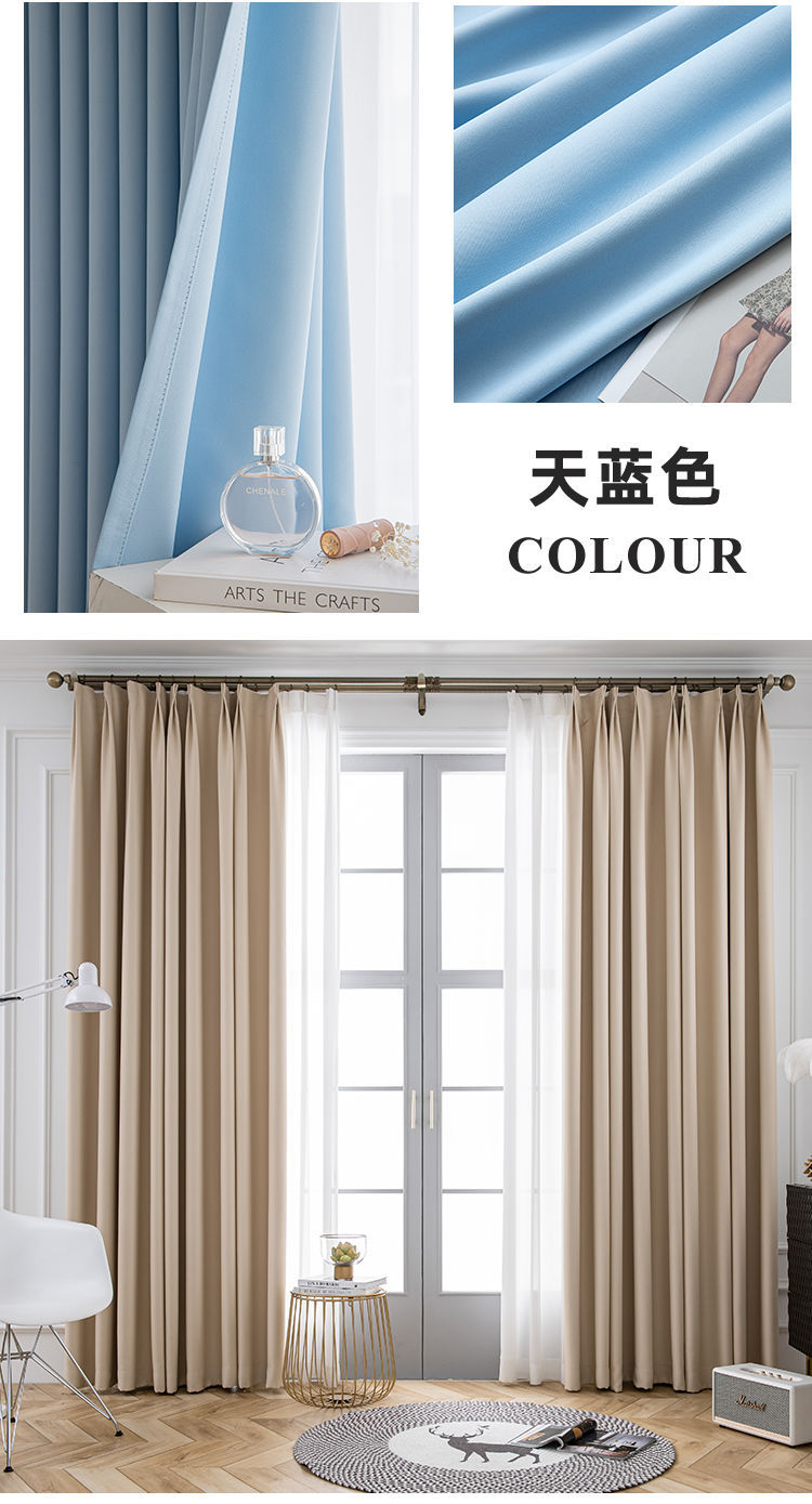 침실 차광 커튼 원단 단열 및 자외선 차단 북유럽 심플 거실 발코니 후크형 완전 차광 차양 원단 플로어 창