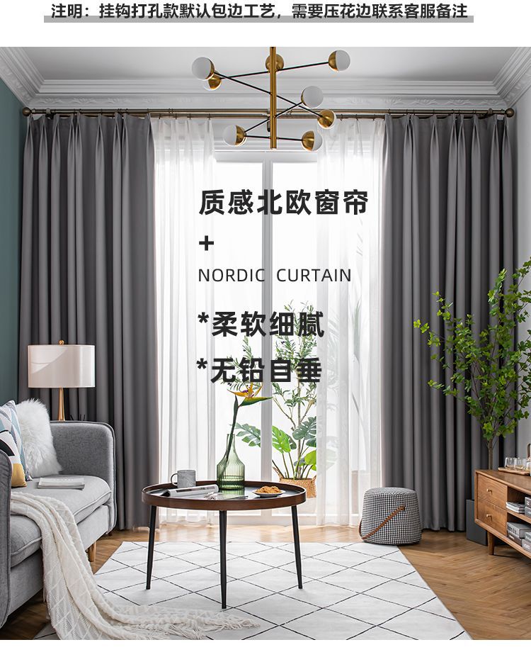 침실 차광 커튼 원단 단열 및 자외선 차단 북유럽 심플 거실 발코니 후크형 완전 차광 차양 원단 플로어 창스토어 가기