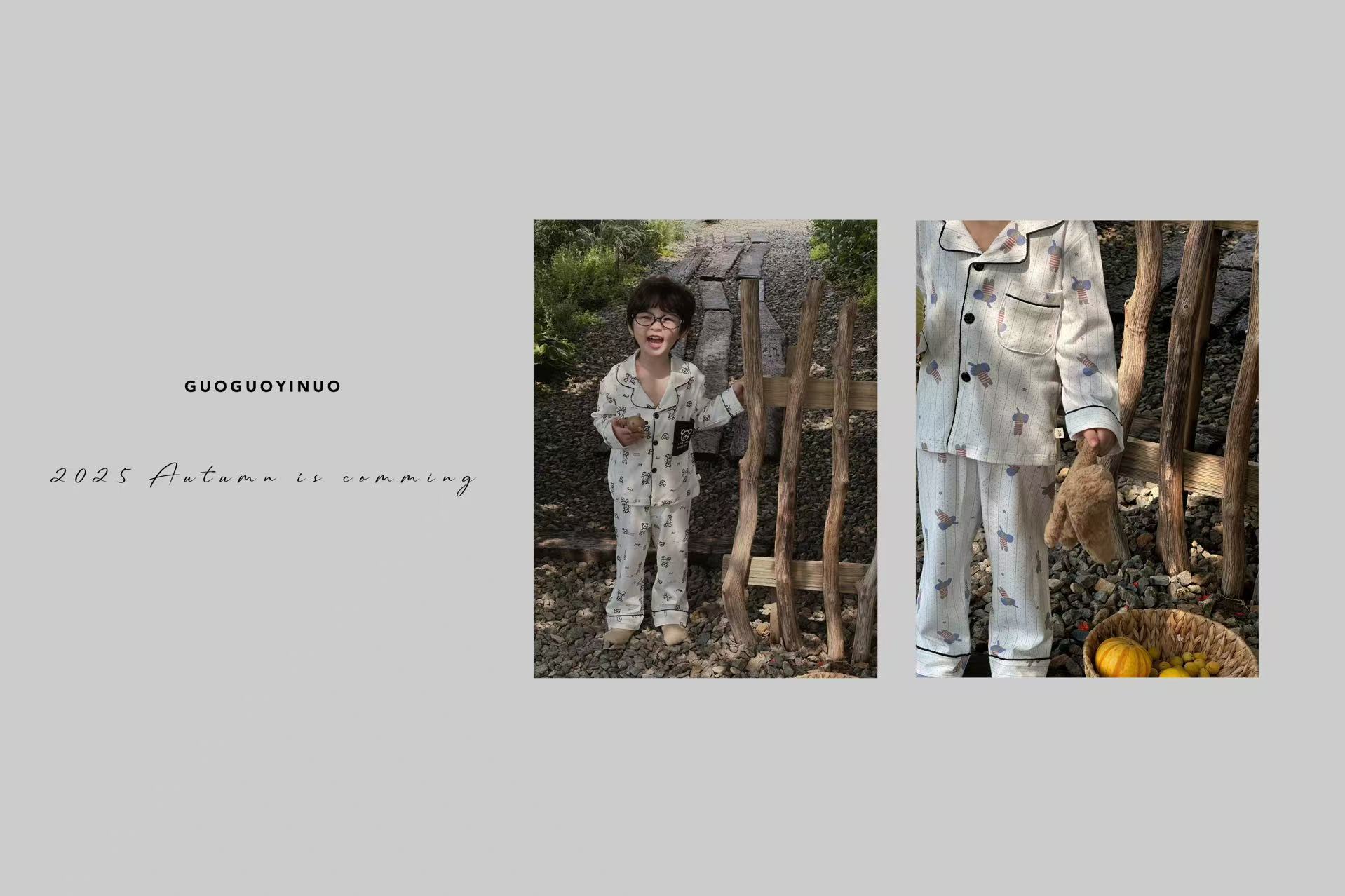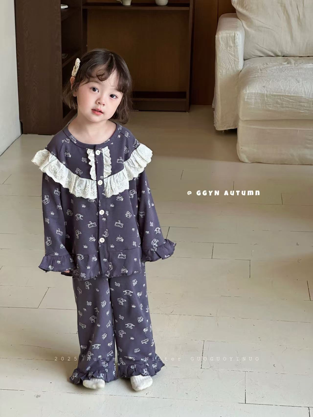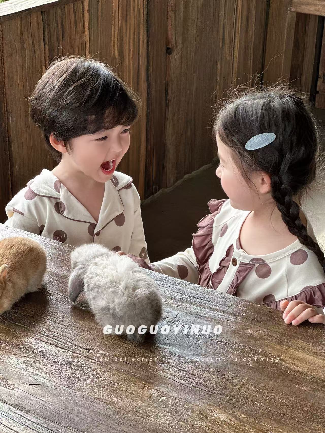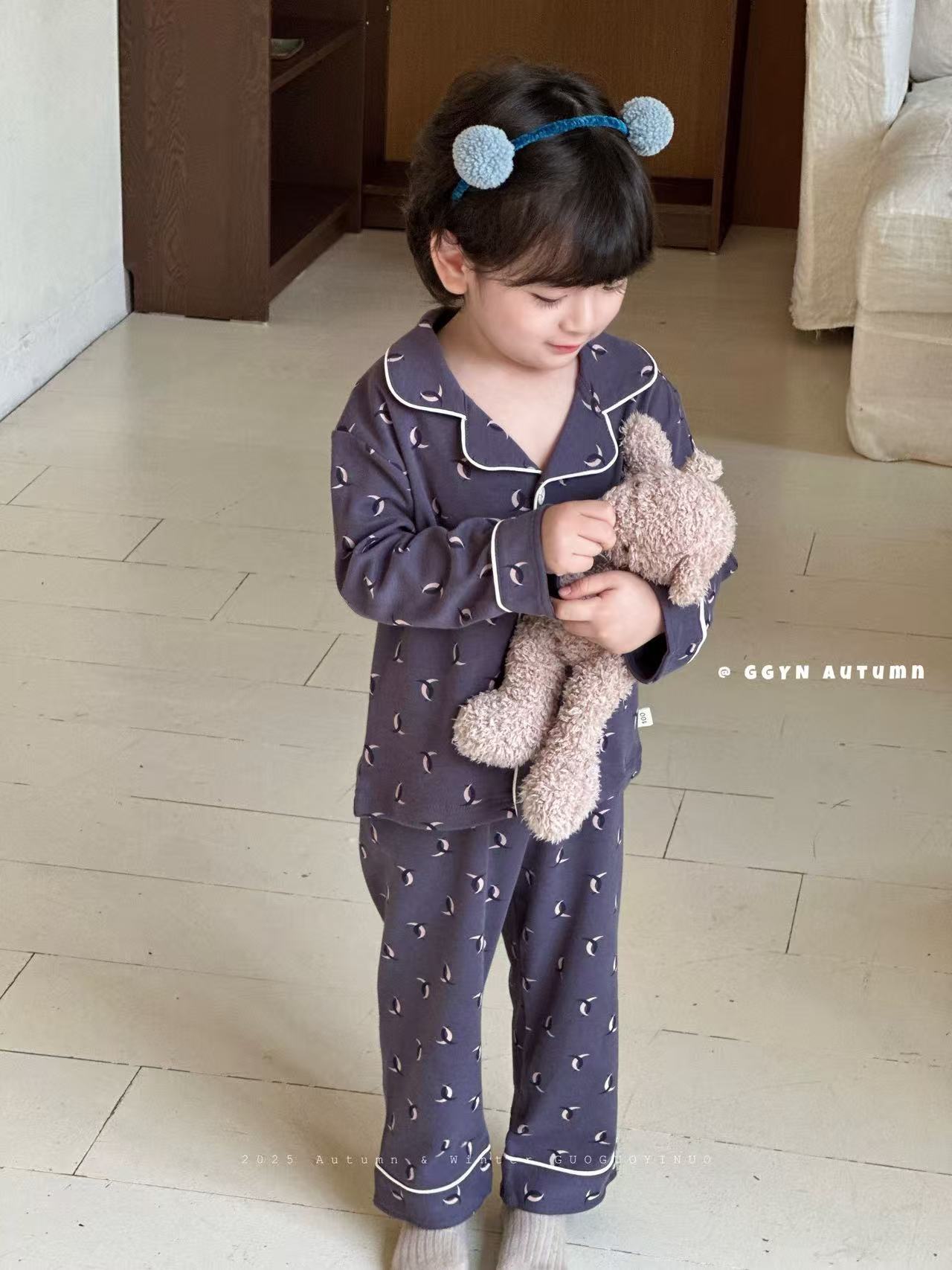 Guoguo YINUO 새로운 가을 잠옷 세트 면 형제 자매 가정복 카테고리 A 카디건 긴팔 격자 무늬 투피스 세트스토어 가기