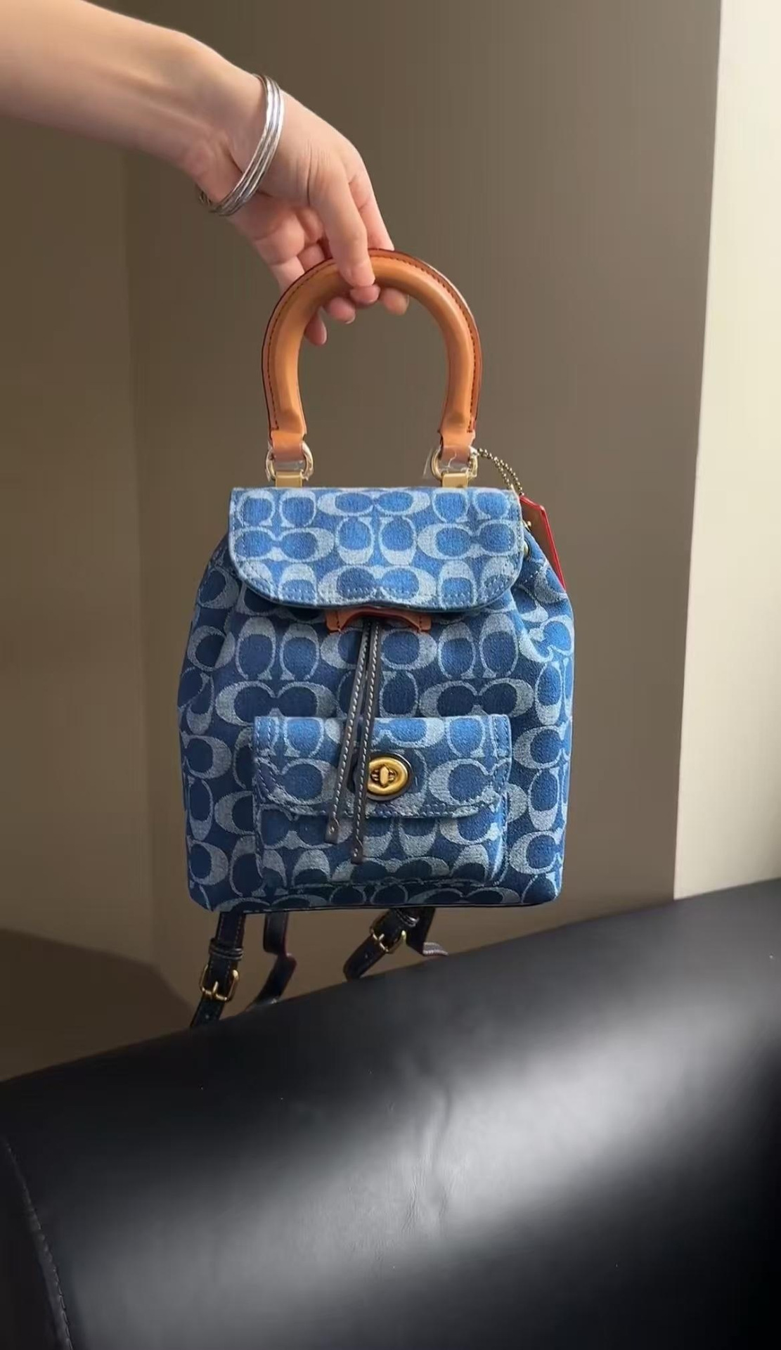 Koujia 2025 새로운 Rita21 배낭 클래식 양피 데님 휴대용 Drawstring 작은 학교 가방 미니 배낭스토어 가기