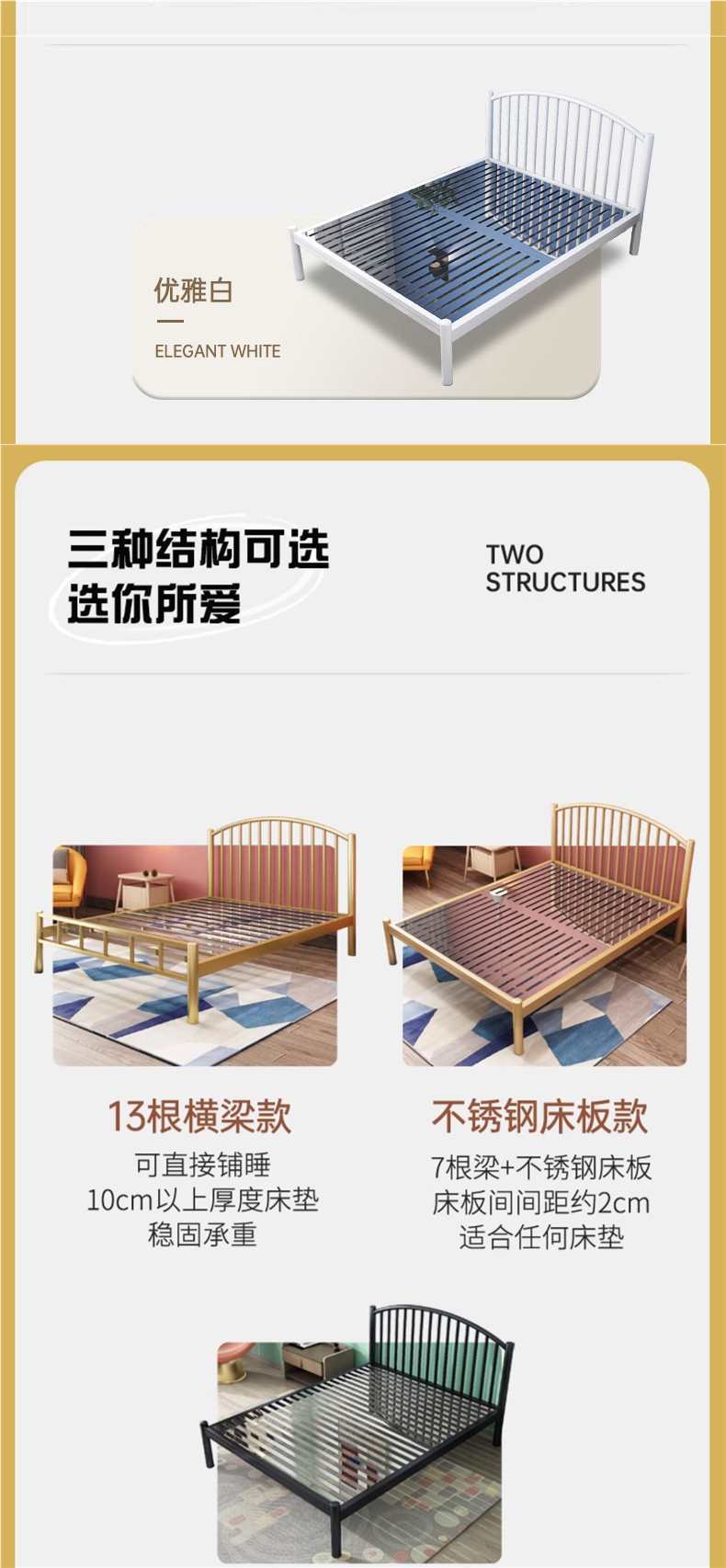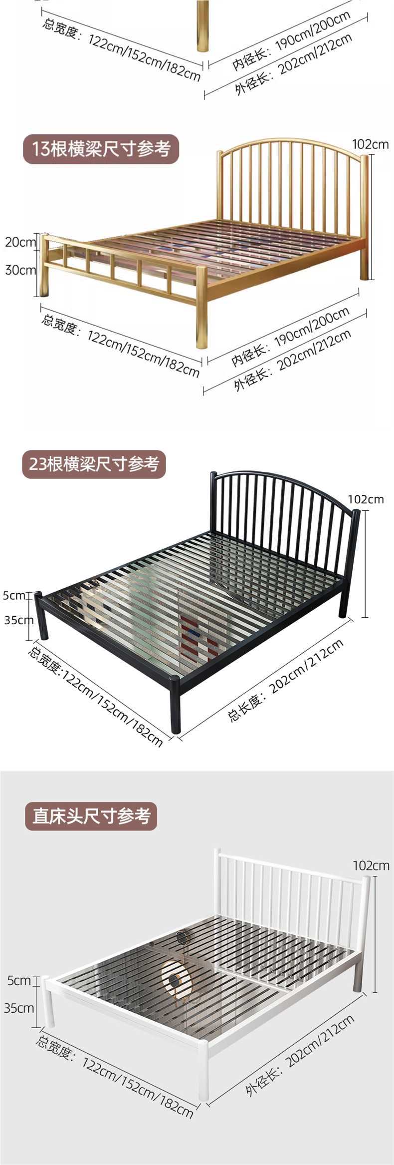 두꺼운 304 스테인레스 스틸 침대 1.5m 1.8m 더블 침대 1.2m 싱글 현대 간단한 철제 프레임 침대