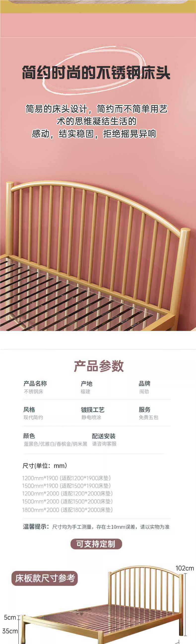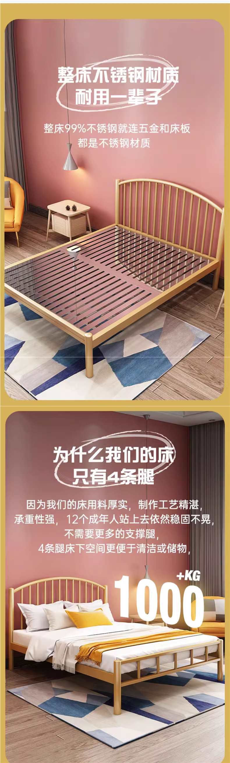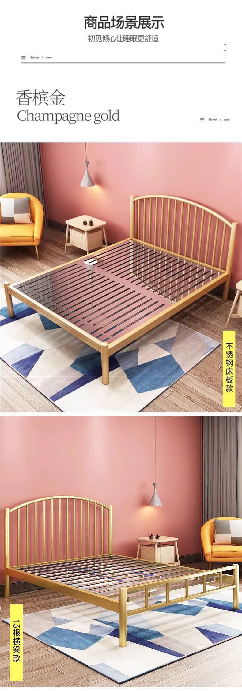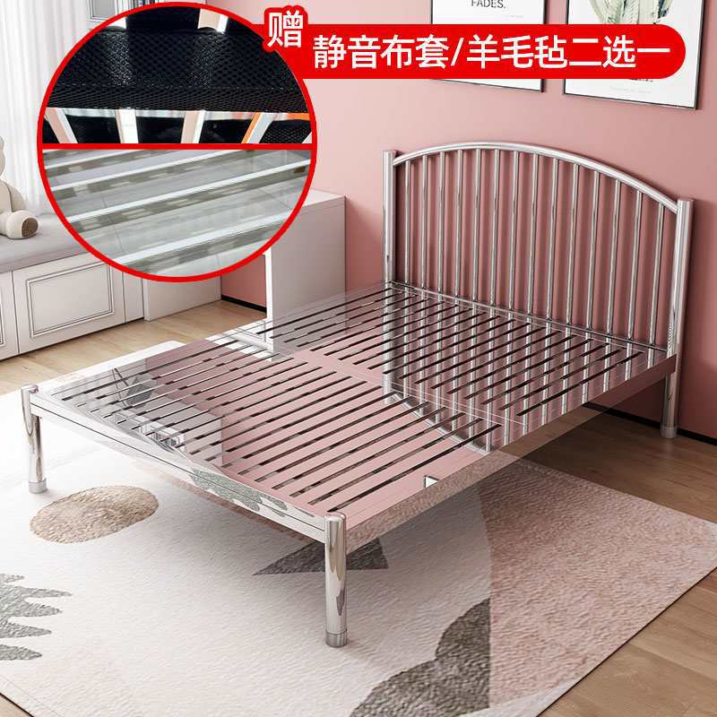 두꺼운 304 스테인레스 스틸 침대 1.5m 1.8m 더블 침대 1.2m 싱글 현대 간단한 철제 프레임 침대스토어 가기