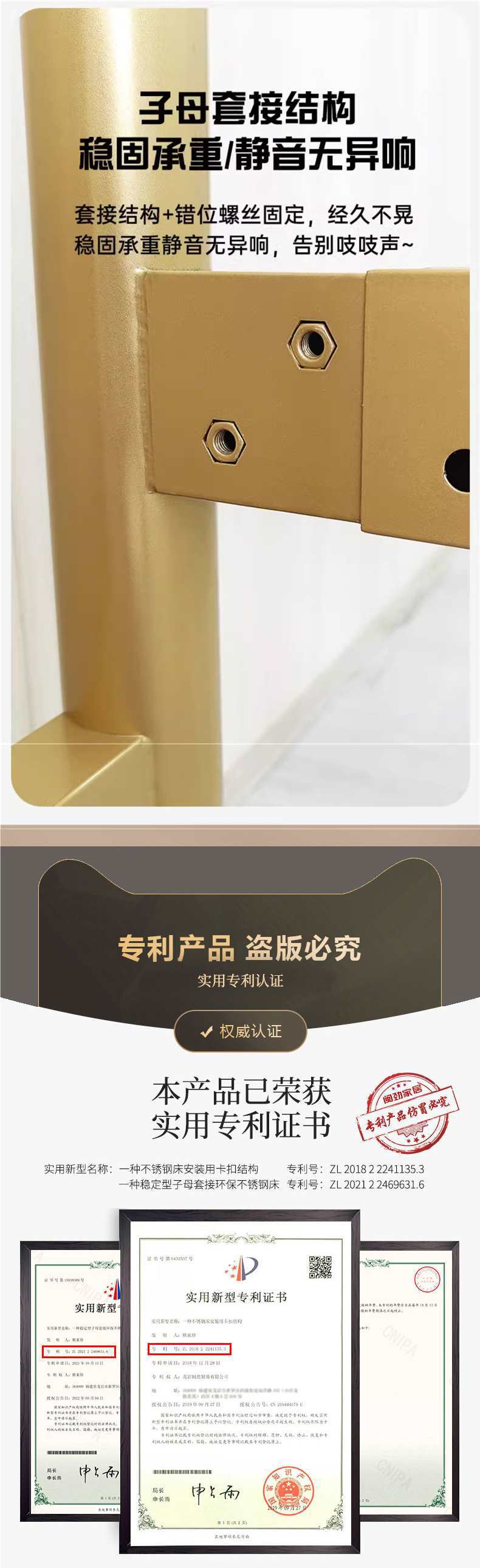 • 304 소재 [스트레이트 침대헤드] 골드 + 통기성 침대보드