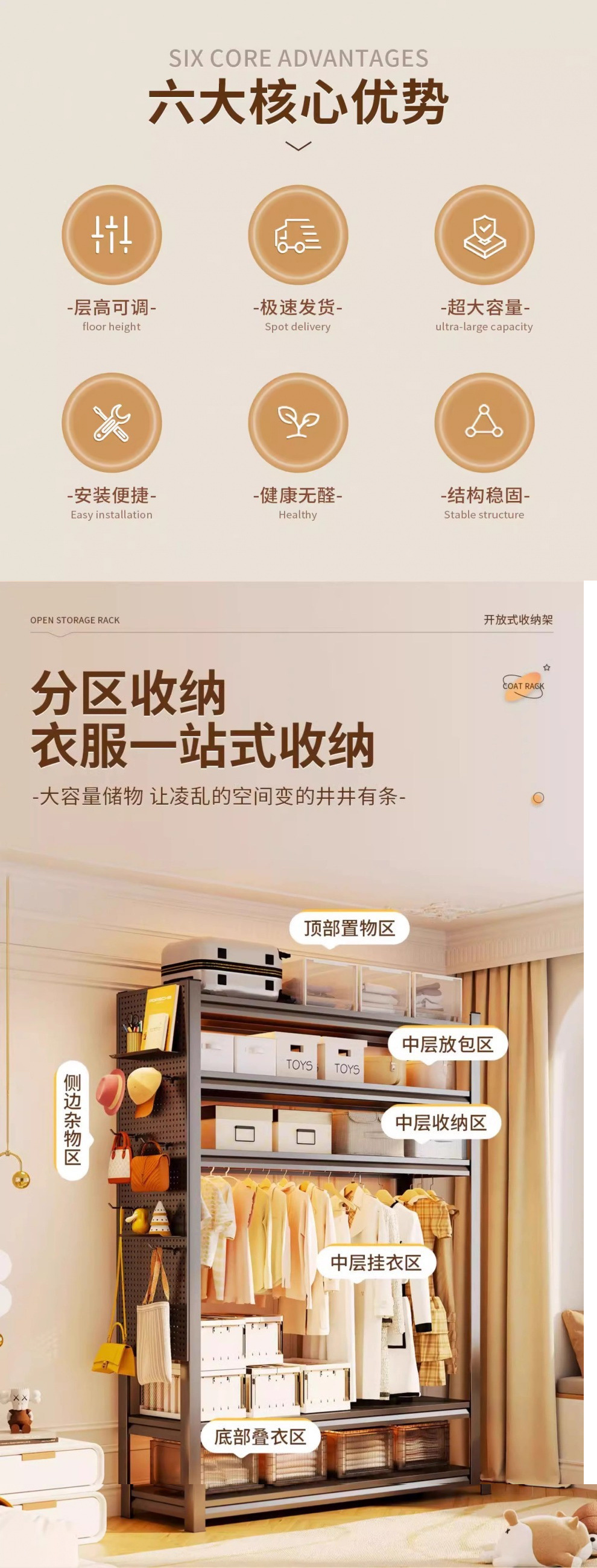 옷장 걸이 선반 방진 커튼 개방형 옷장 침실 간단한 코너 스틸 가정용 바닥에서 천장까지 다층 보관 랙