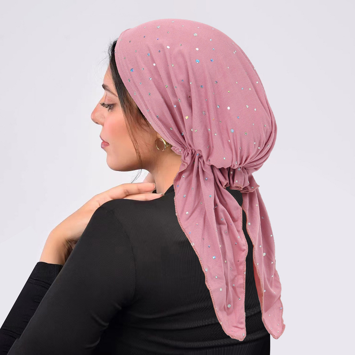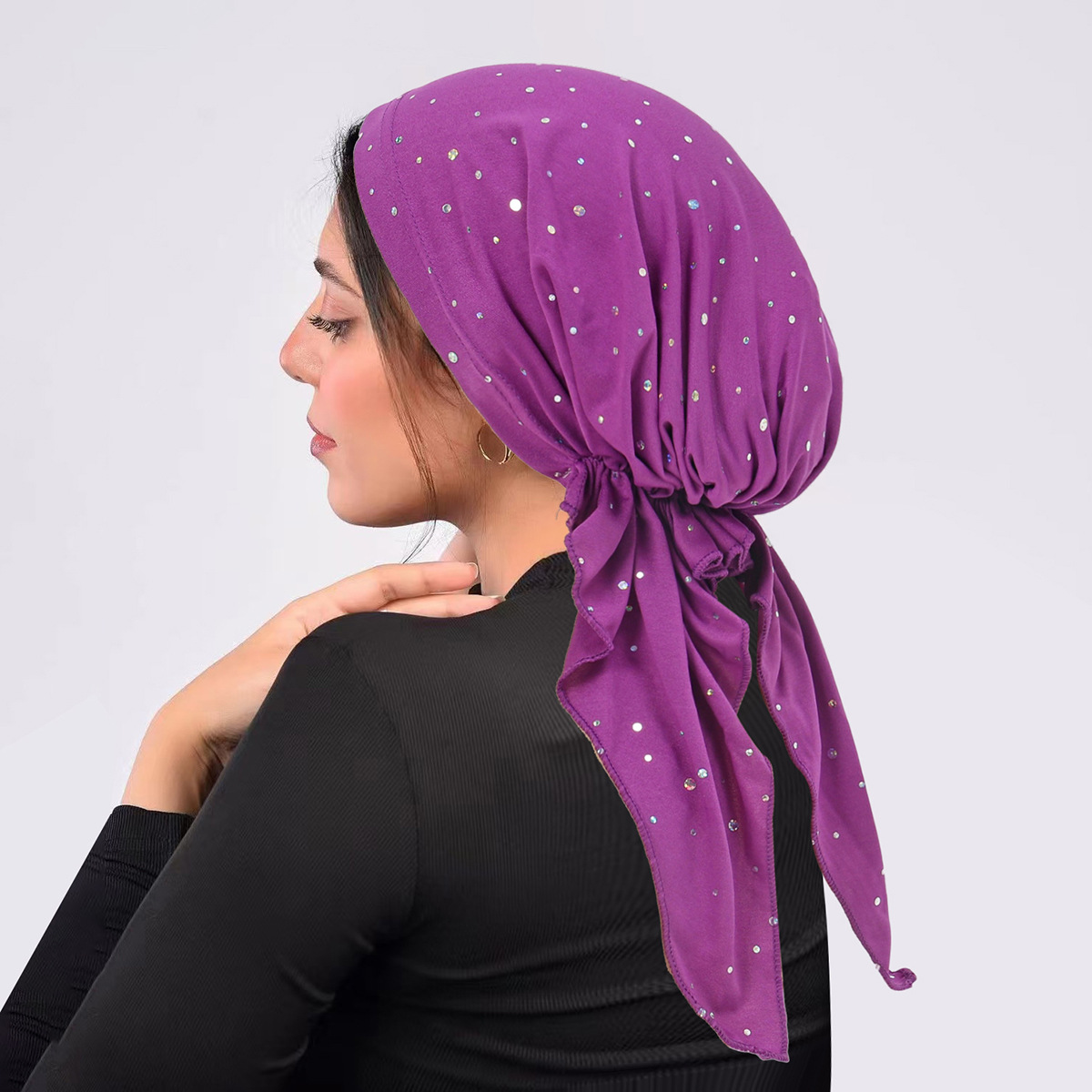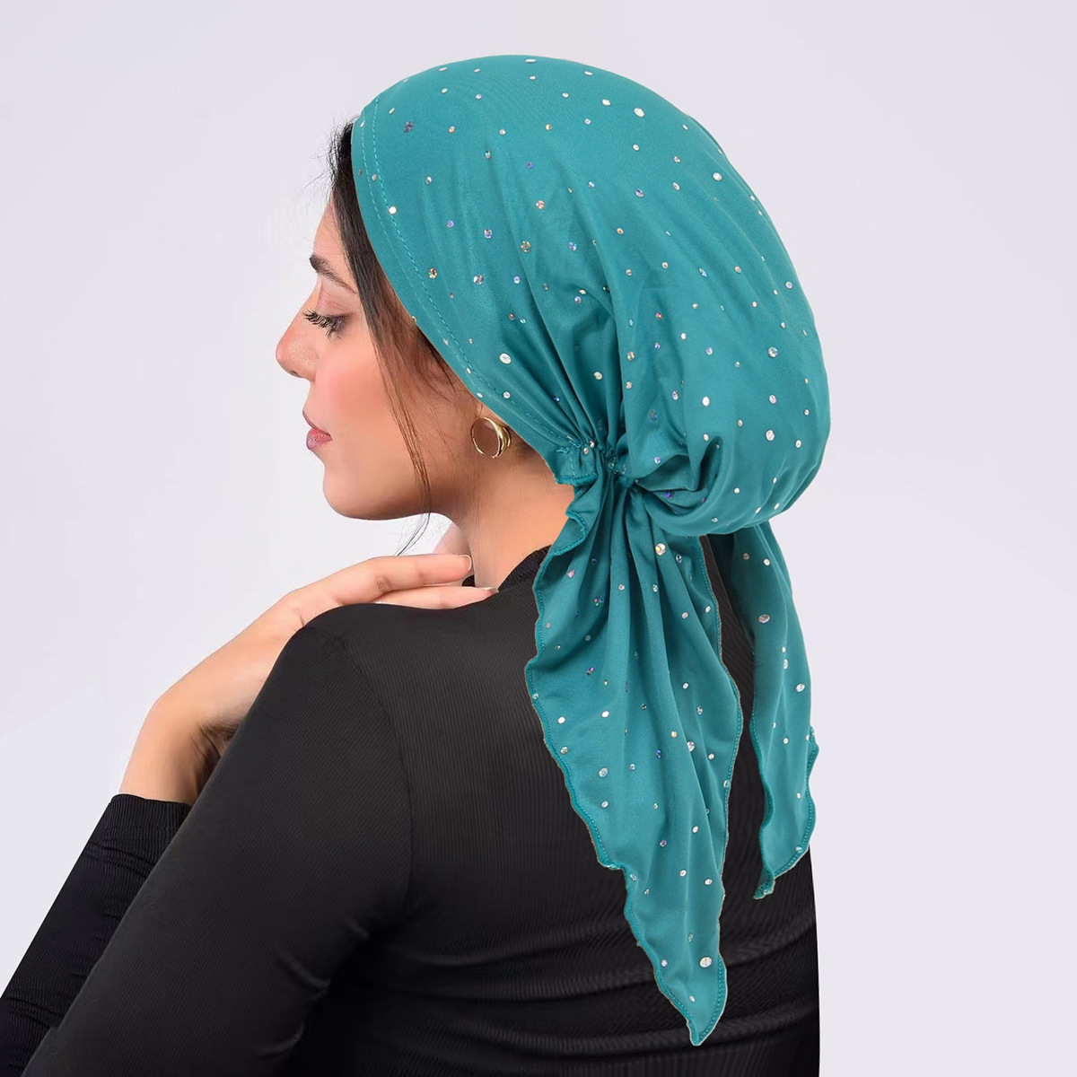 국경 간 유럽과 미국의 스팽글 터번 곡선 단색 모자 멀티 컬러 스트랩 탄성 풀오버 모자 여성용 터번 모자