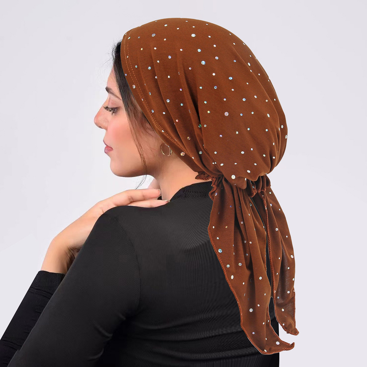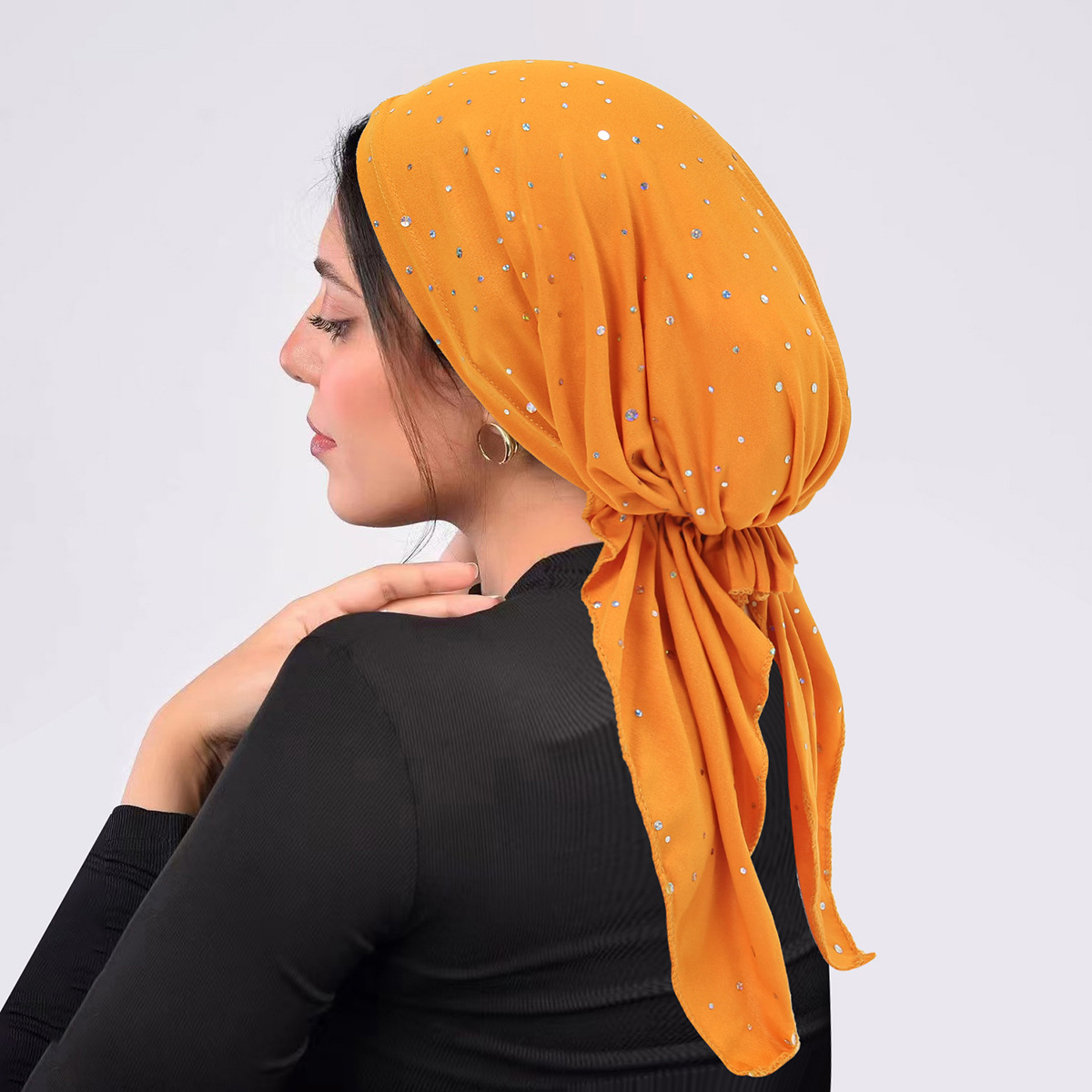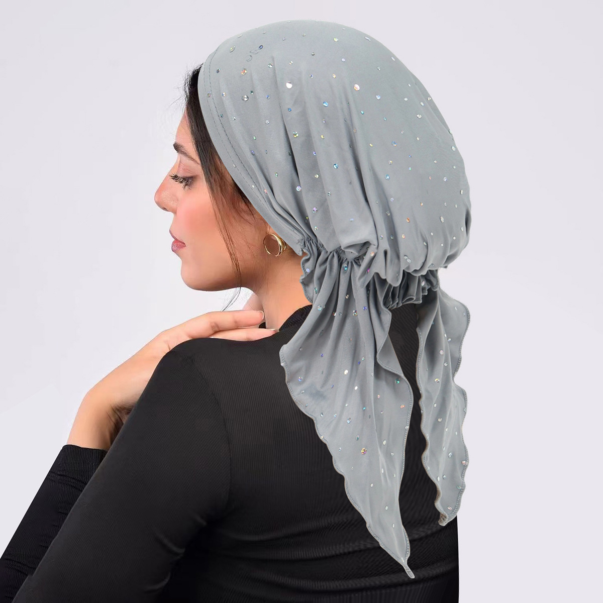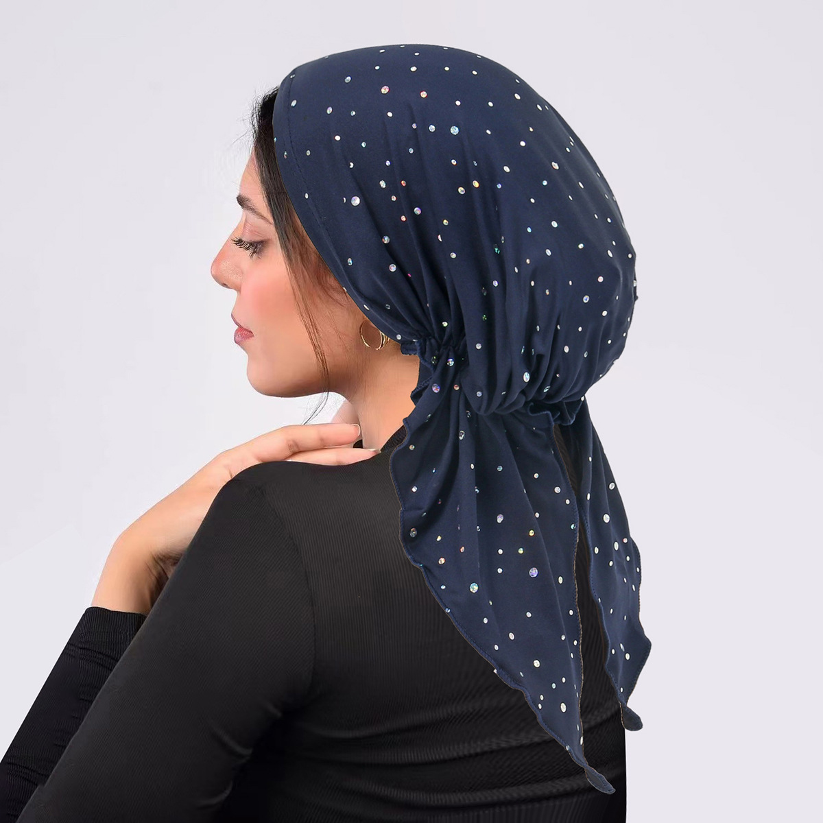 국경 간 유럽과 미국의 스팽글 터번 곡선 단색 모자 멀티 컬러 스트랩 탄성 풀오버 모자 여성용 터번 모자