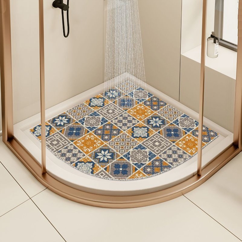레트로 타일 부채꼴 목욕 바닥 매트 곡선 샤워실 욕실 중공 와이어 링 바닥 매트 투수성 미끄럼 방지 발 매트