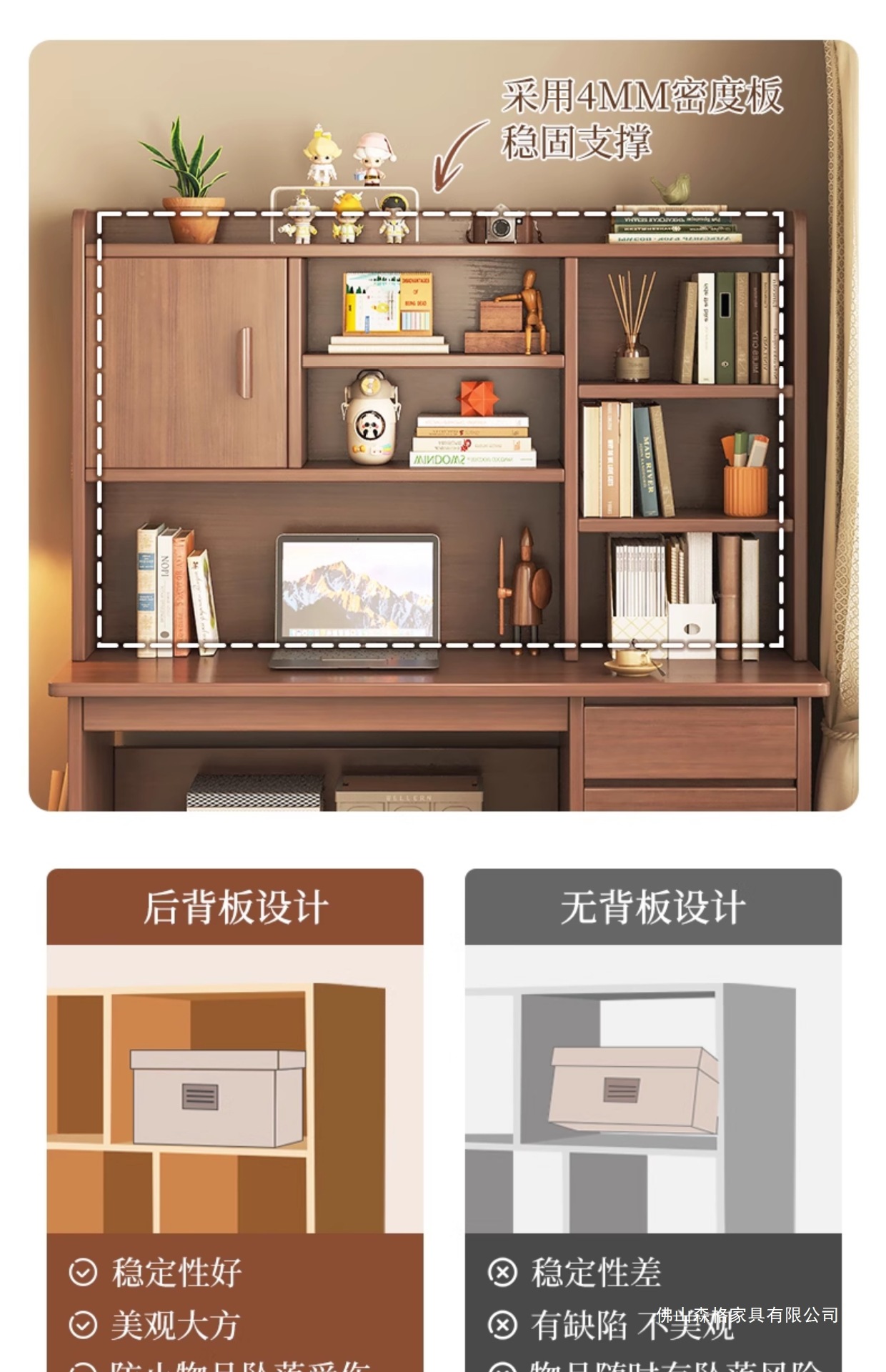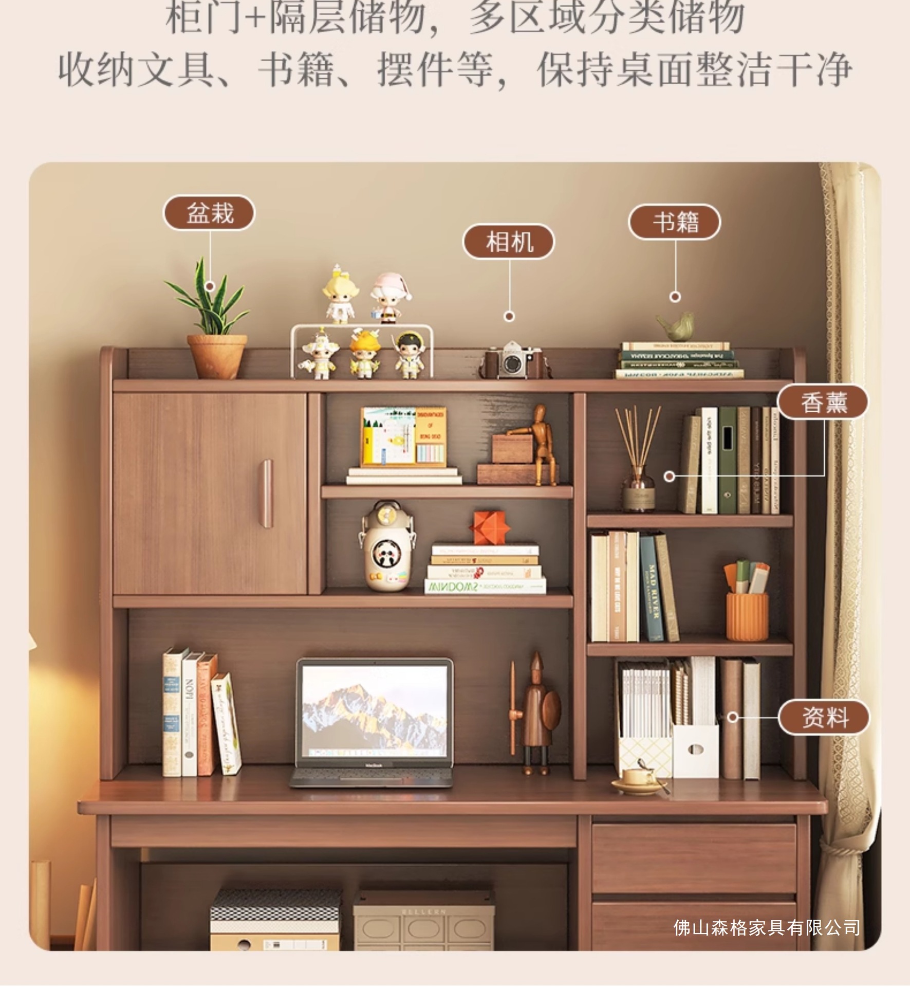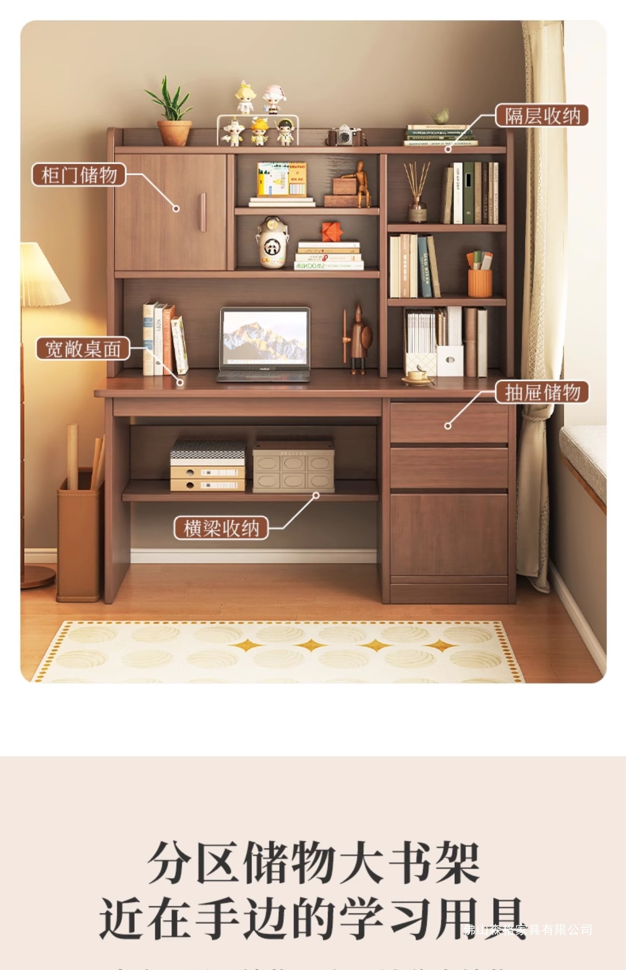 • ( ★ 데스크탑 + 책장 확장 버전) 100CM 높이 캐비닛 도어 모델 다크 월넛 색상 SF Express Door to Door 배송