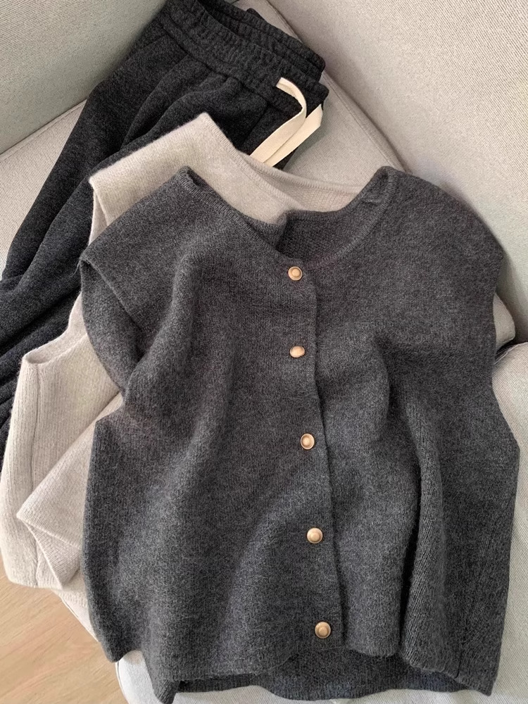 여성용 한국식 레이어드 니트 조끼 가디건 그레이 하이엔드 민소매 탑 2025 봄 싱글 브레스트 버튼 조끼