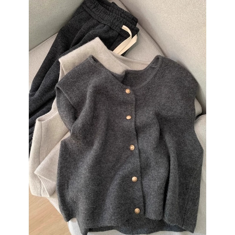 여성용 한국식 레이어드 니트 조끼 가디건 그레이 하이엔드 민소매 탑 2025 봄 싱글 브레스트 버튼 조끼스토어 가기