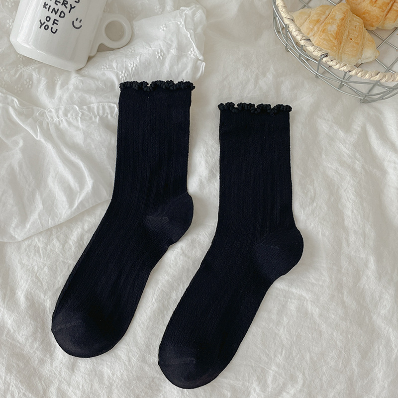 Miu 발레 스타일 양말 여성 봄, 여름 얇은 레이스 메쉬 통기성 긴 양말 순수 코튼 버섯 레이스 양말