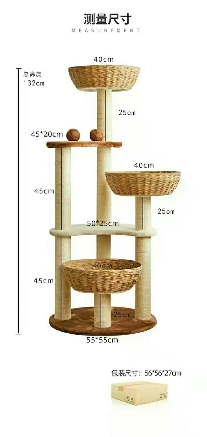 • 브라운 3개 둥지 모델 + 황마 로프 + 양면 매트