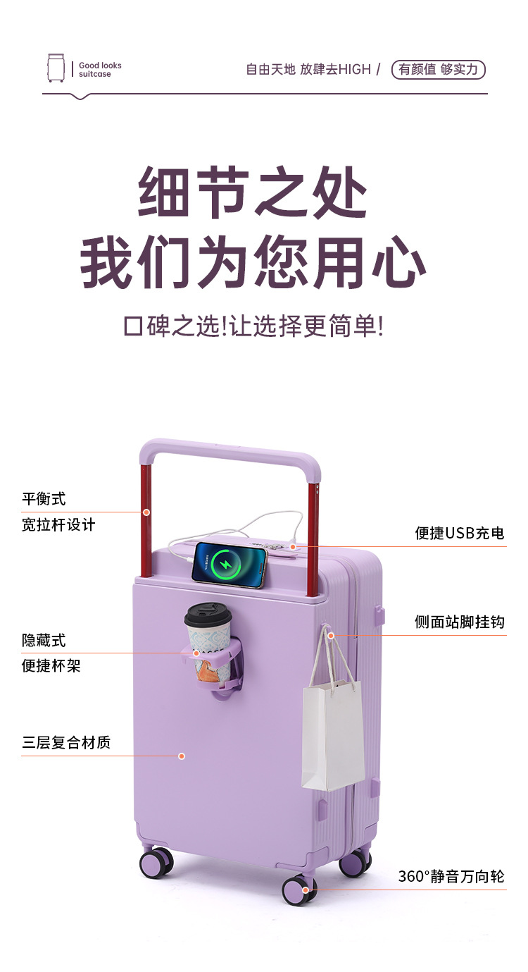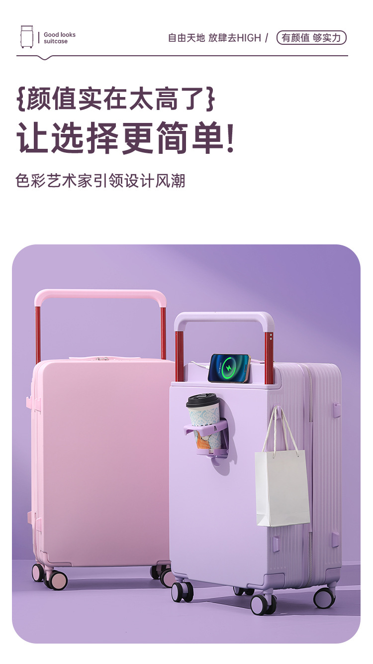 두꺼운 합금 와이드 트롤리 2025 여름 신작 남성과 여성 학생을 위한 여행 가방, 멋진 외관 및 인쇄 가능스토어 가기