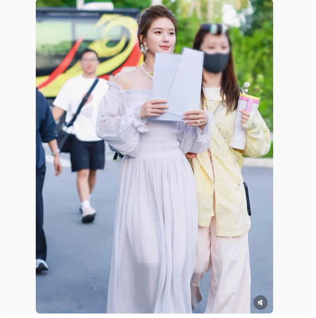 Zhao Lusi의 여성을 위한 달콤한 원 숄더 긴팔 드레스 2025 고급 기질 슬림 롱 스커트스토어 가기