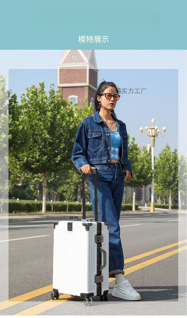 2024 새로운 스타일의 대용량 여행 가방, 남성과 여성 학생을 위한 튼튼한 알루미늄 프레임, 내구성이 뛰어난 트롤리, 범용 바퀴, 여행용 코드 상자스토어 가기